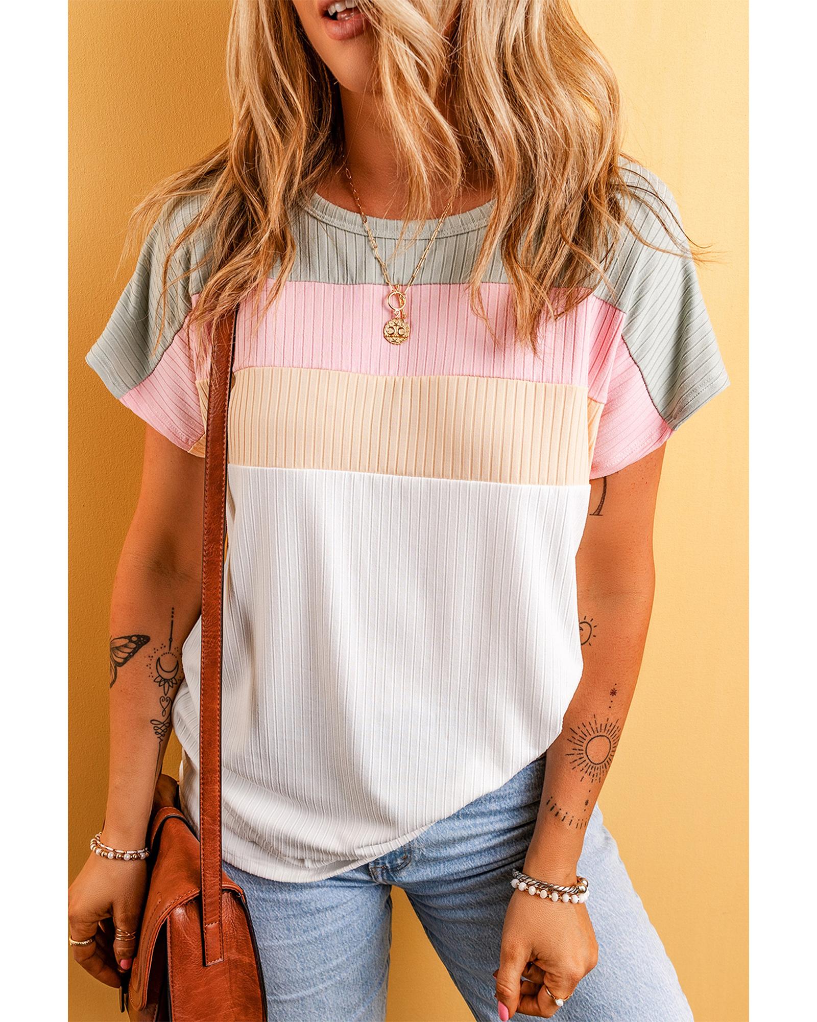 Beige Solid Textured Batwing Sleeve Crew Neck T Shirt - L