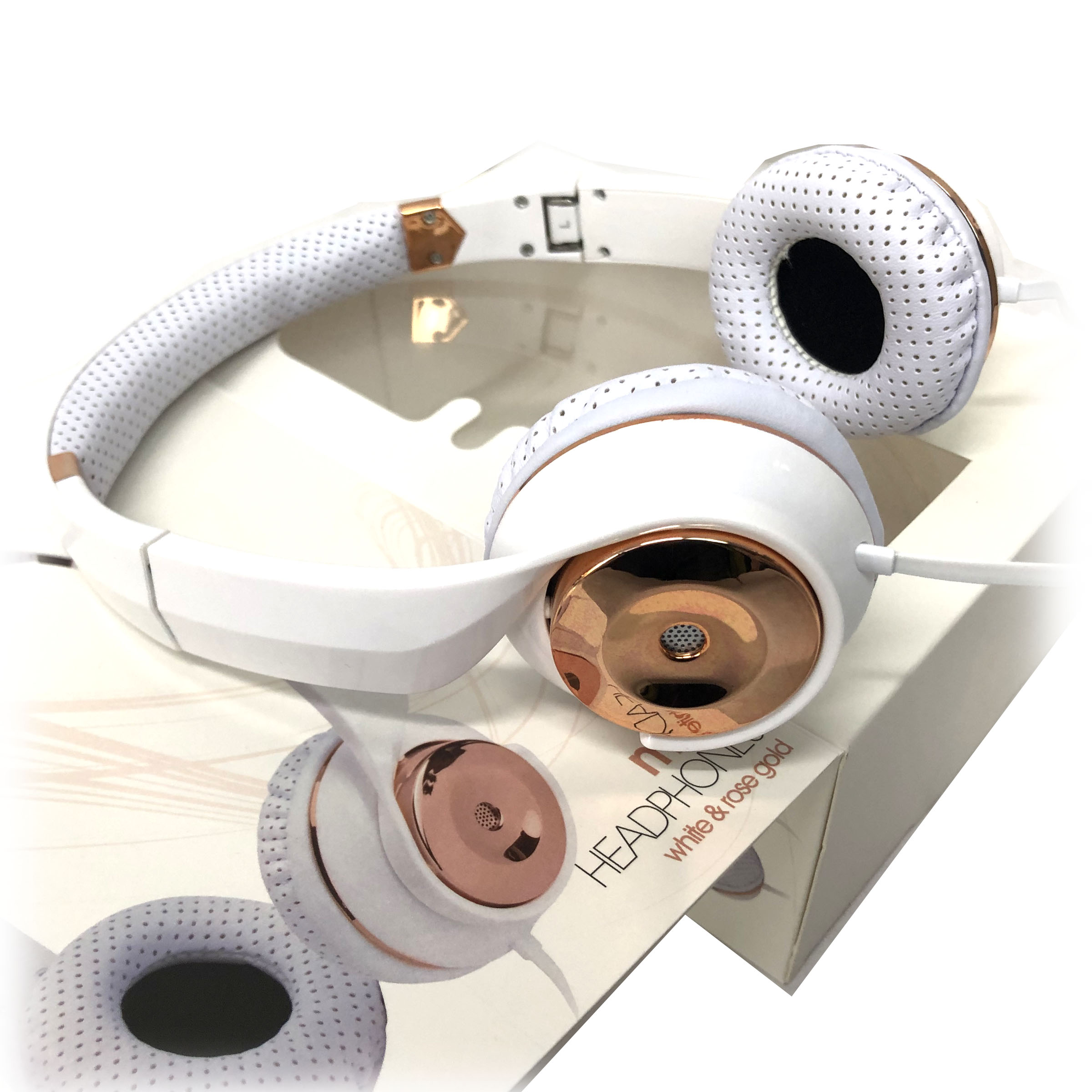 White Rose Gold Holysmoke Motif On Ear Foldable Headphones