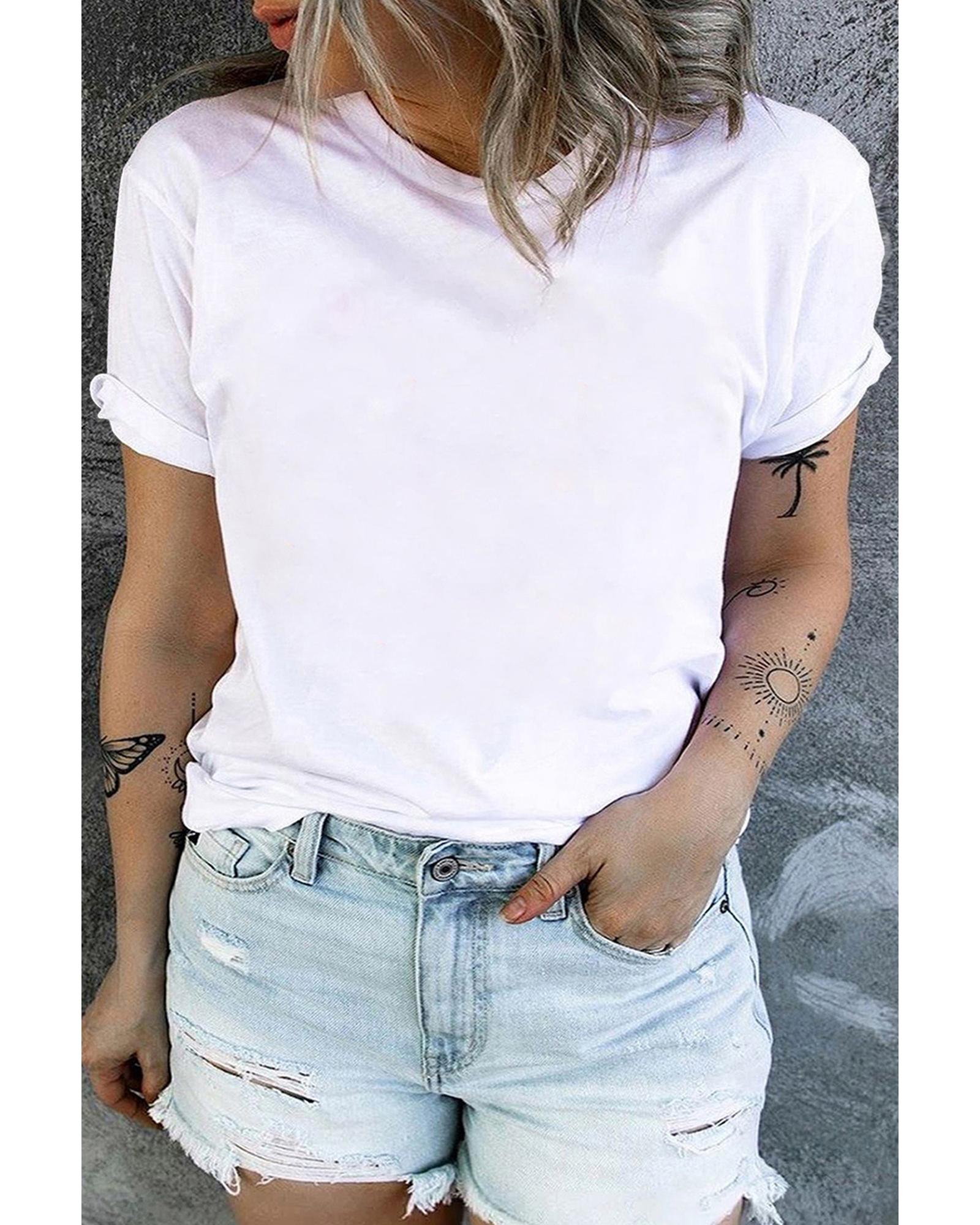 White Round Neck Rolled Sleeve Plus Size T-shirt – 2X