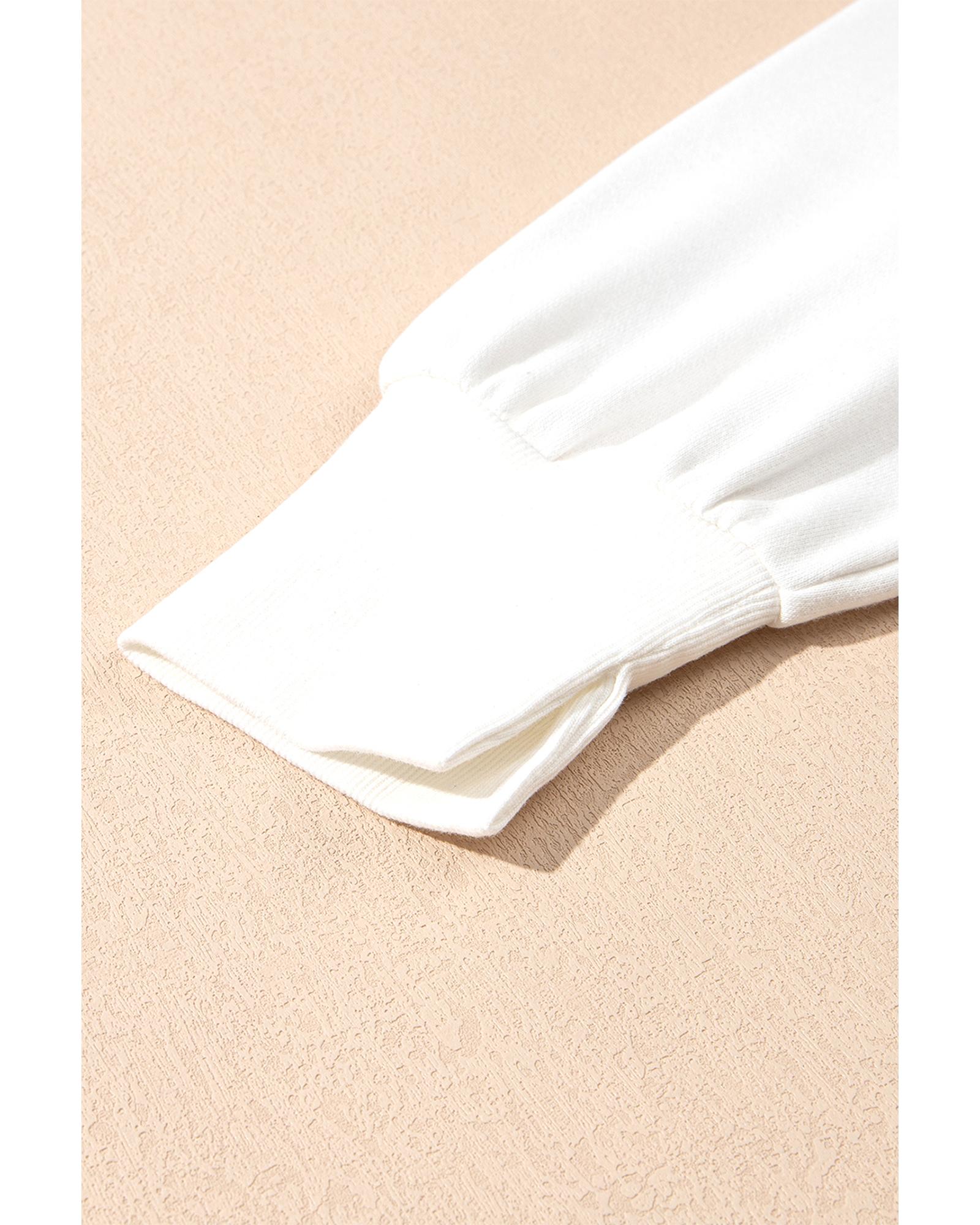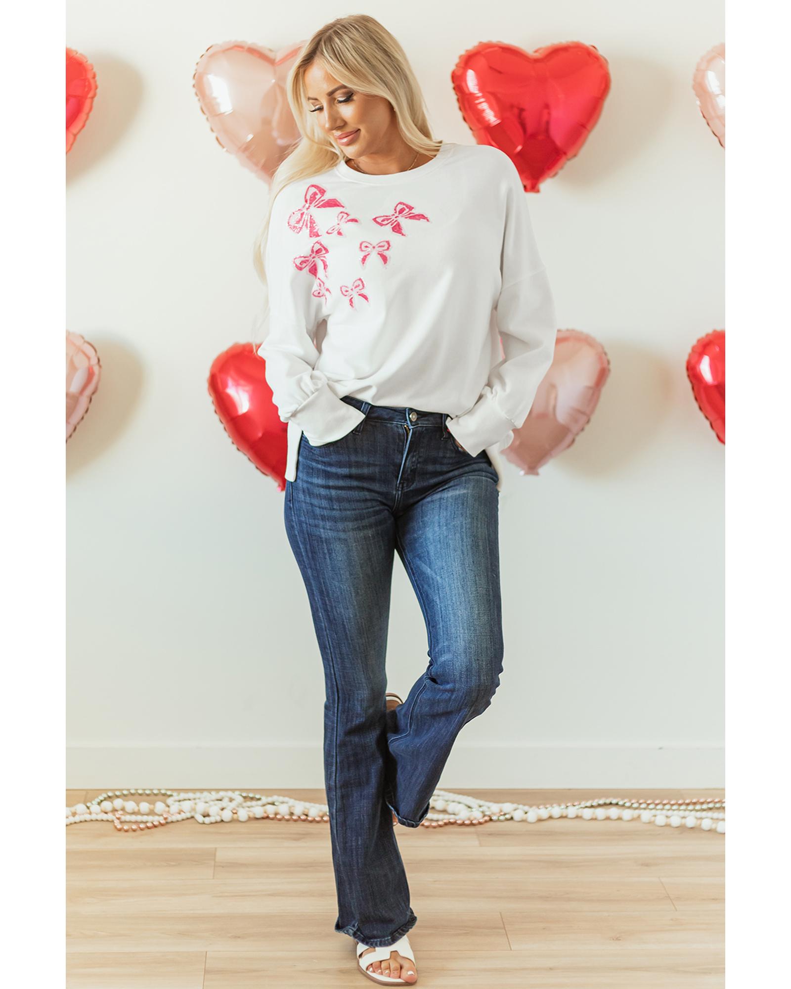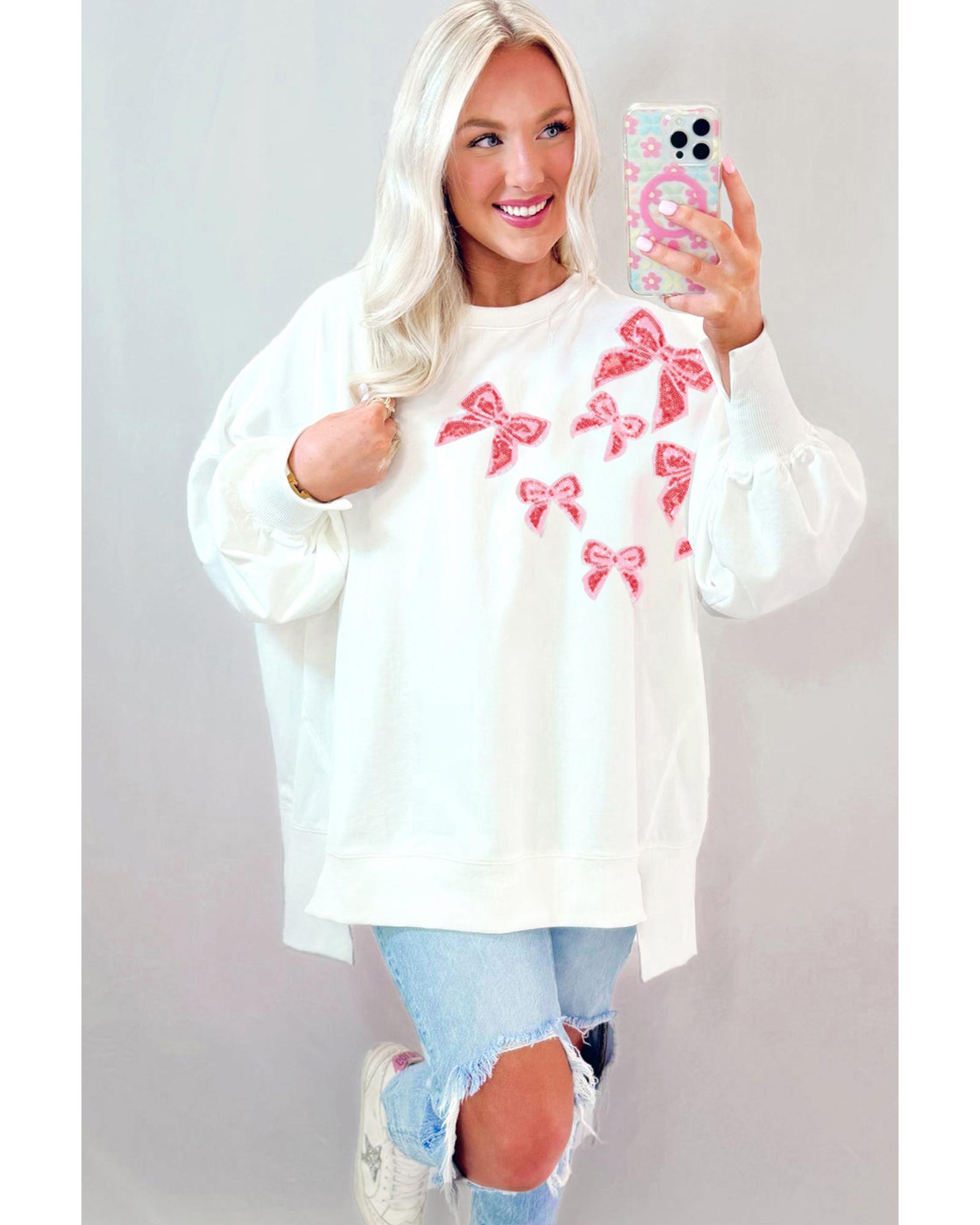White Sequin Bowknot High Low Oversize Sweatshirt – L