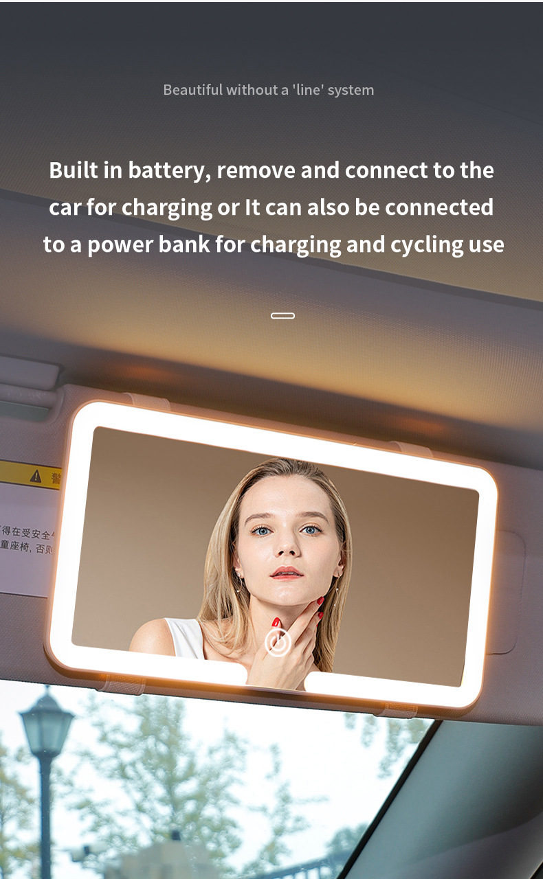 White Single button Car Sun Visor Makeup Mirror with LED Light – Tri-Color, Touch Control