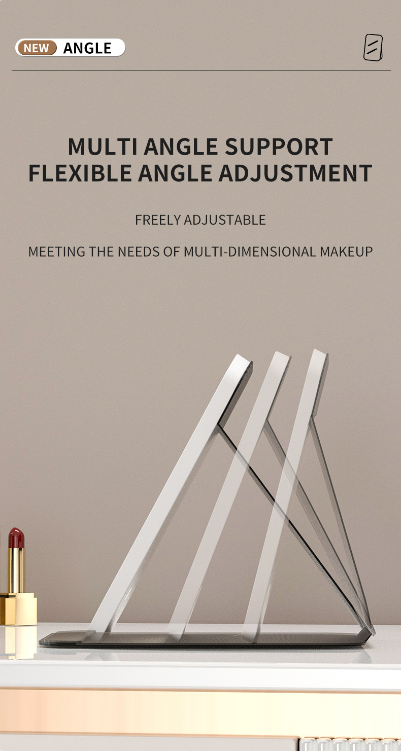 - Multi-Angle Adjustable Stand: The integrated stand offers flexible angle adjustment, allowing you to position the mirror for optimal viewing comfort, whether sitting or standing.