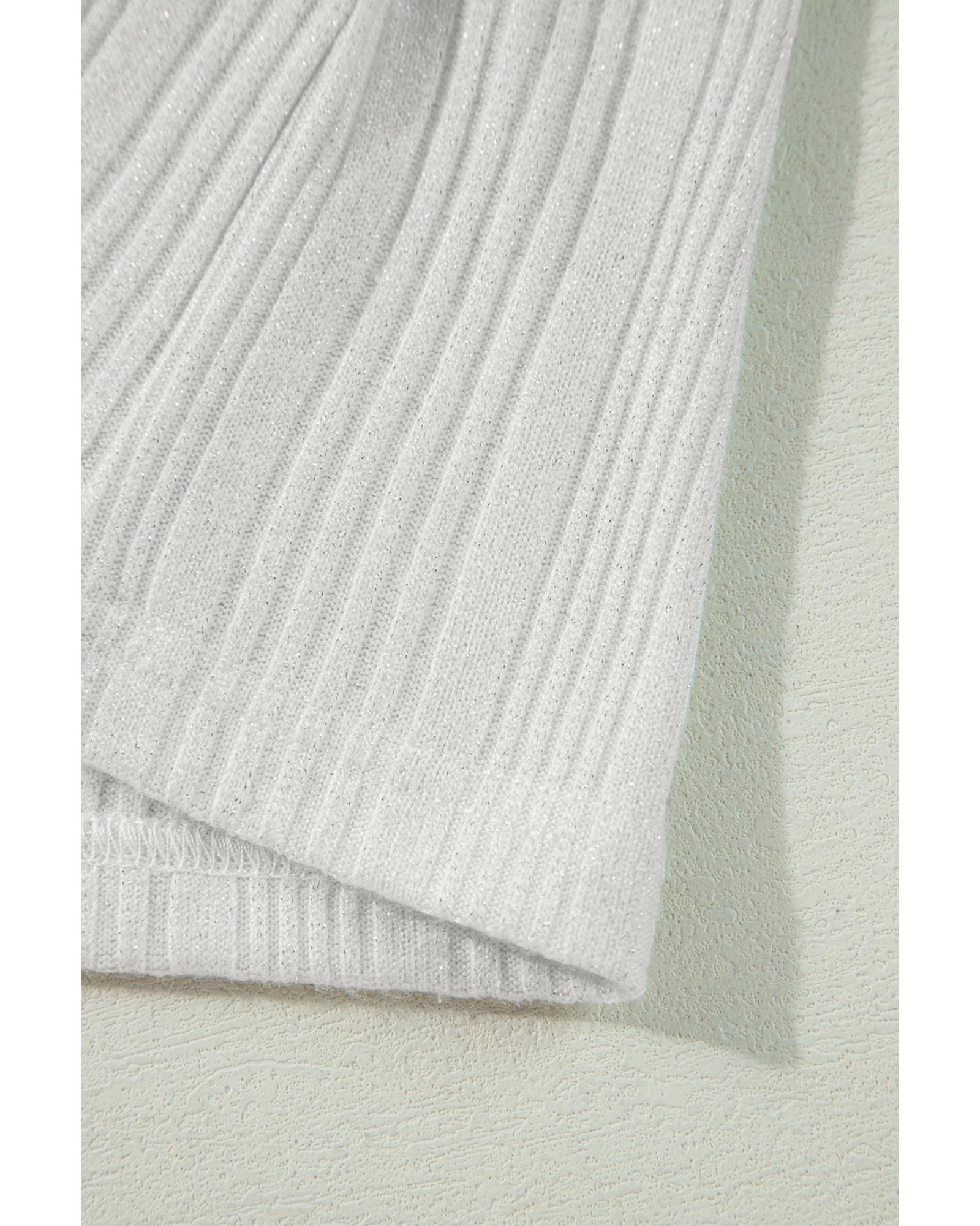 White Solid Color Ribbed Button up Tunic Cardigan – XL