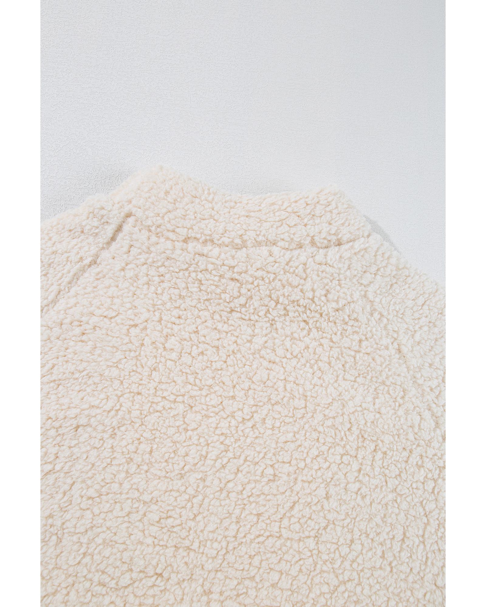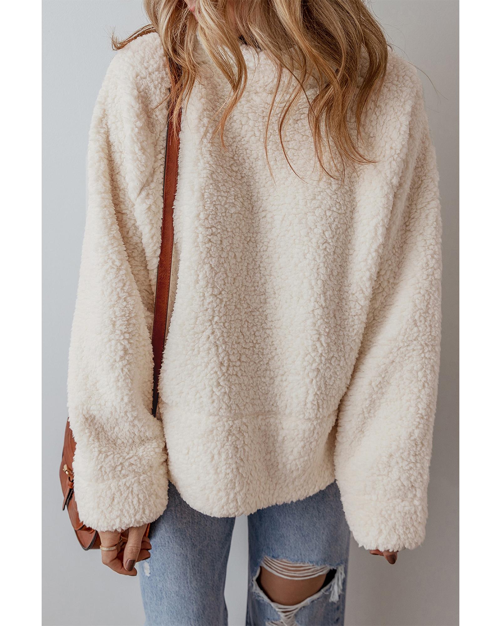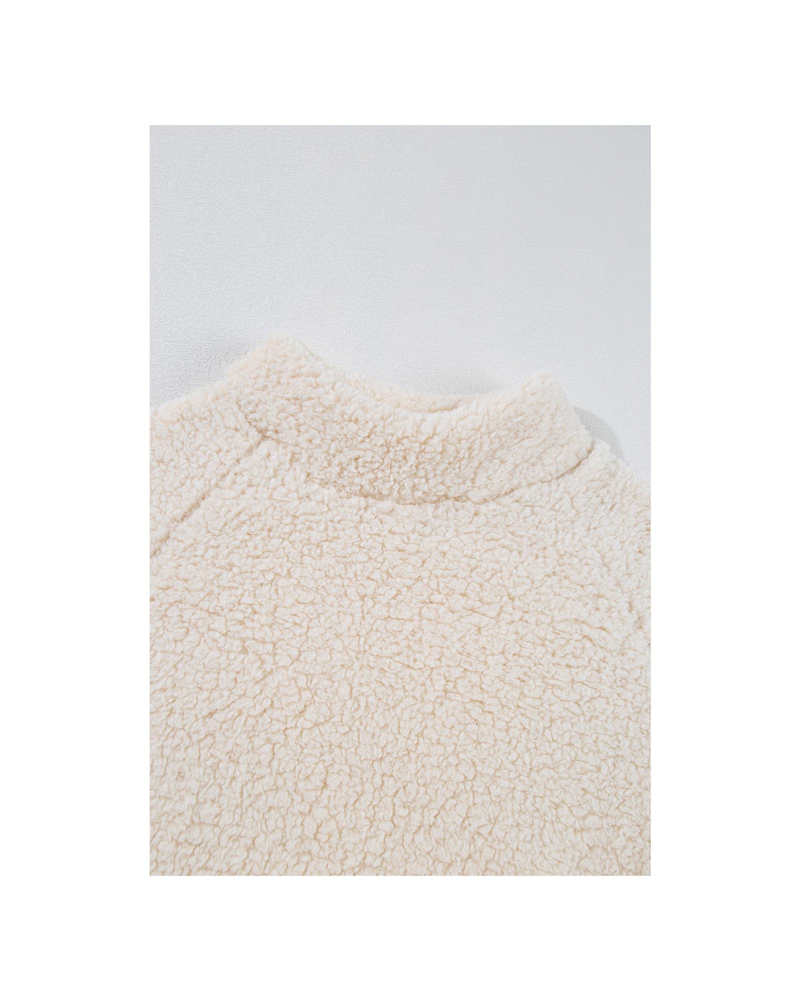 - White Solid Fleece High Neck Drop Shoulder Pullover Sweatshirt