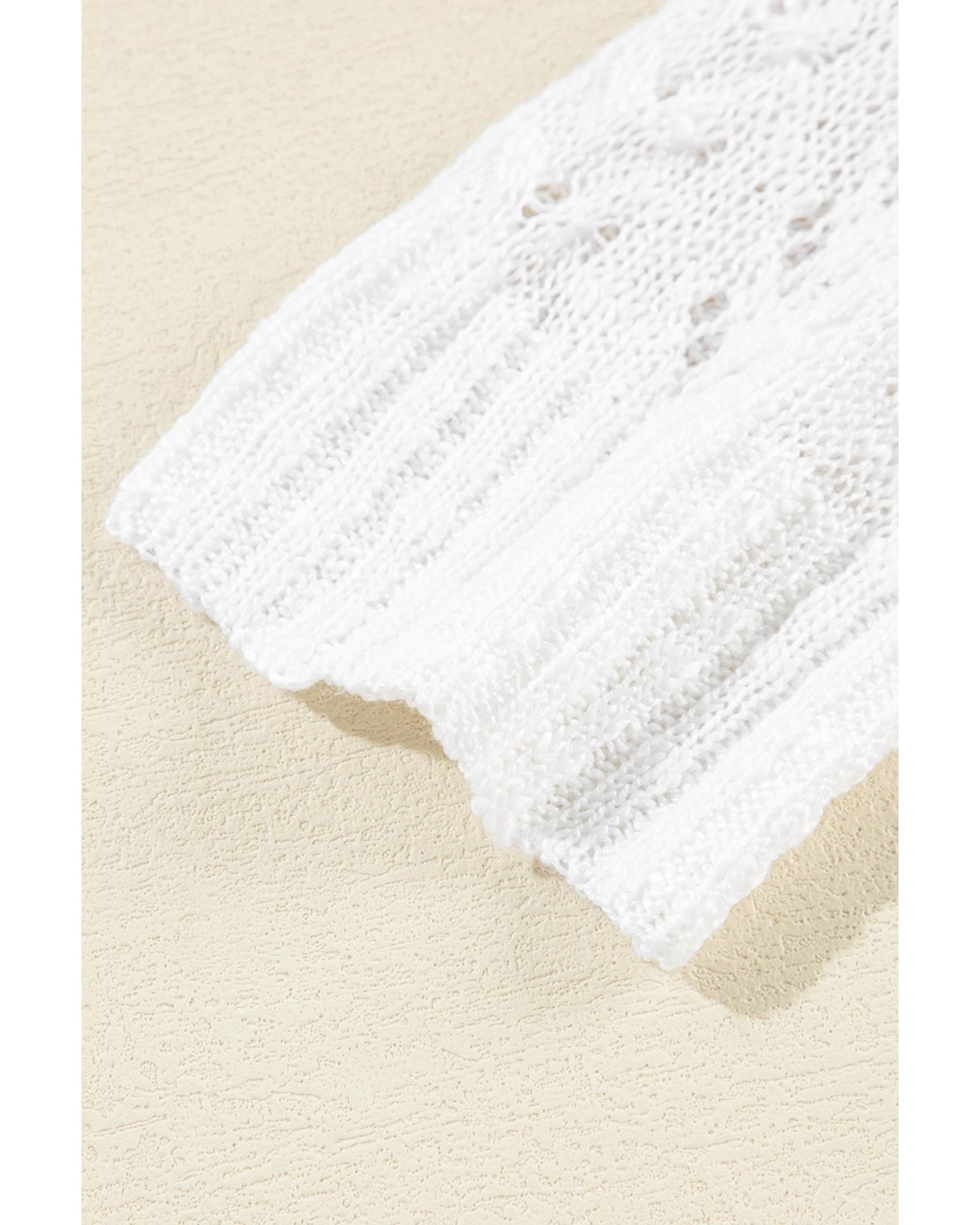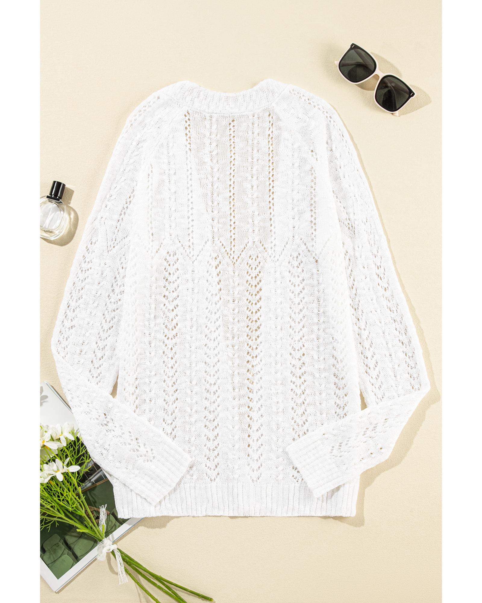 Azura Exchange Khaki Hollow-out Openwork Knit Cardigan - M