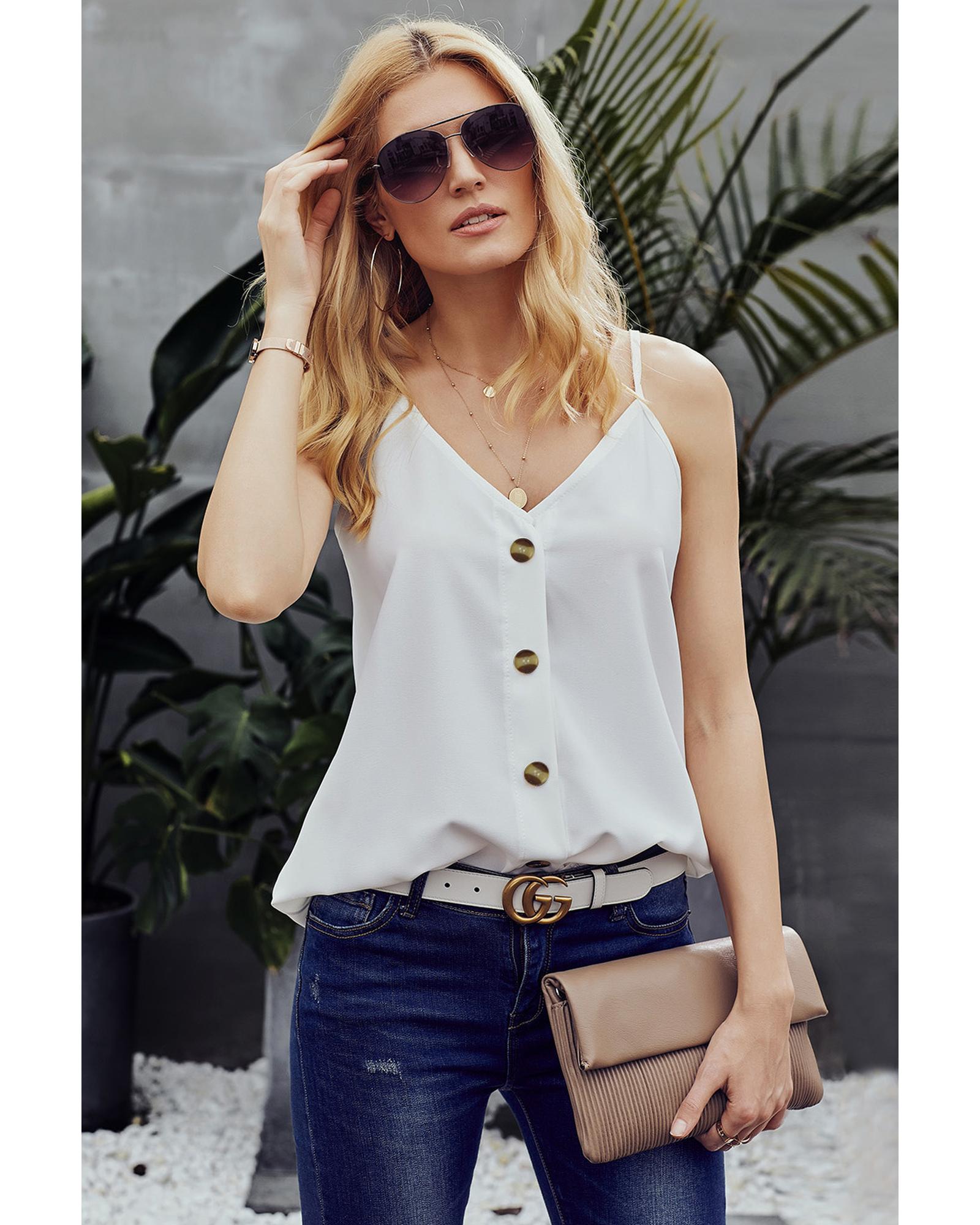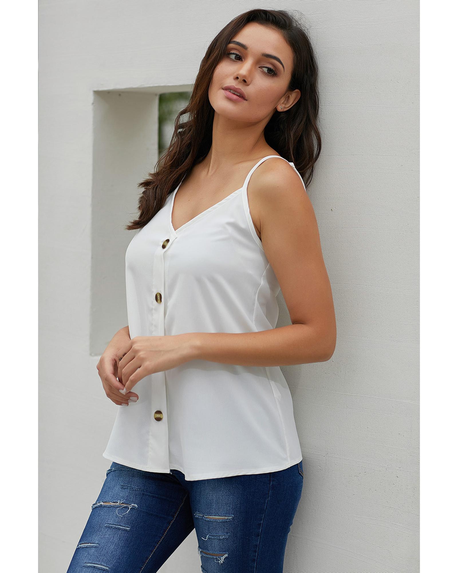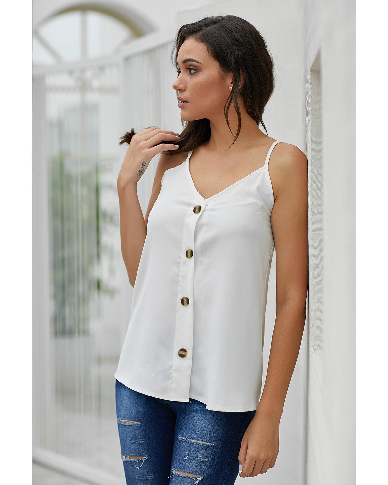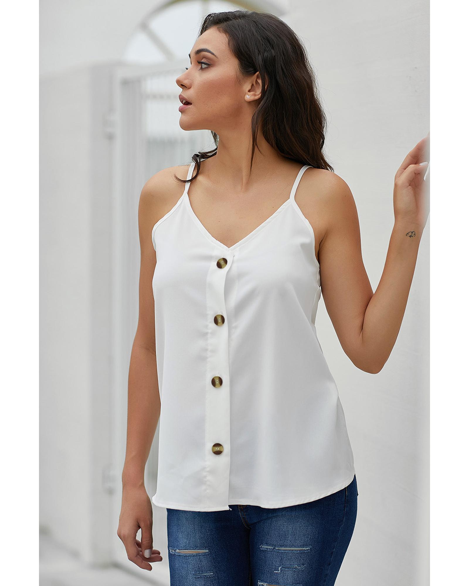 White Spaghetti Strap Buttoned Tank Top – S