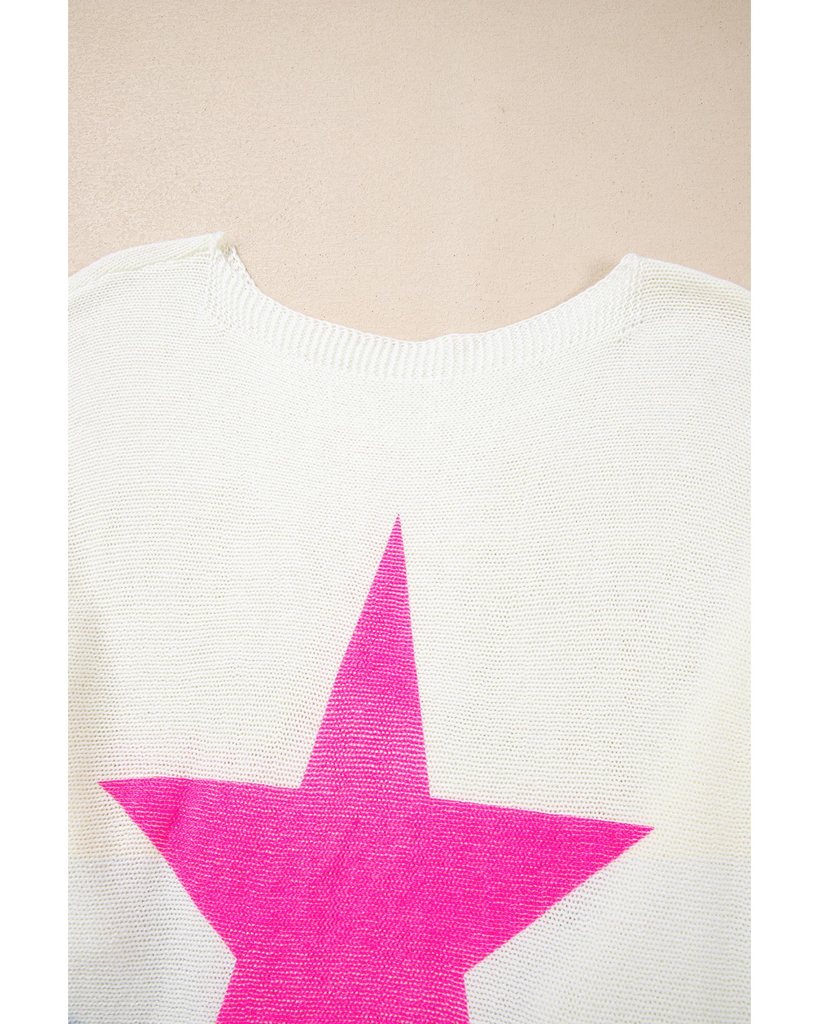 White Star Pattern Colorblock Striped Edge Drop Shoulder Sweater – L