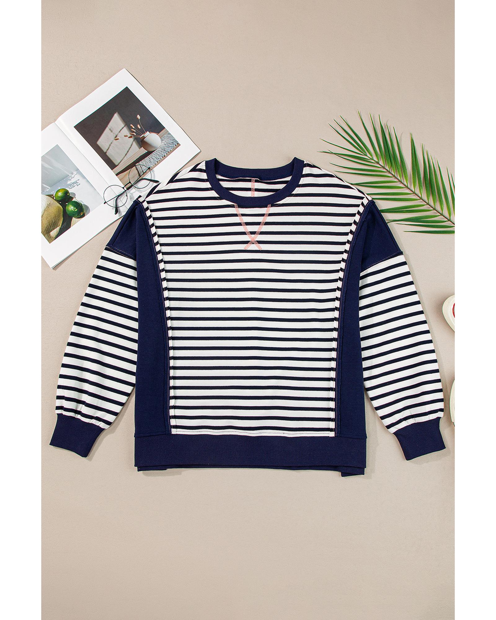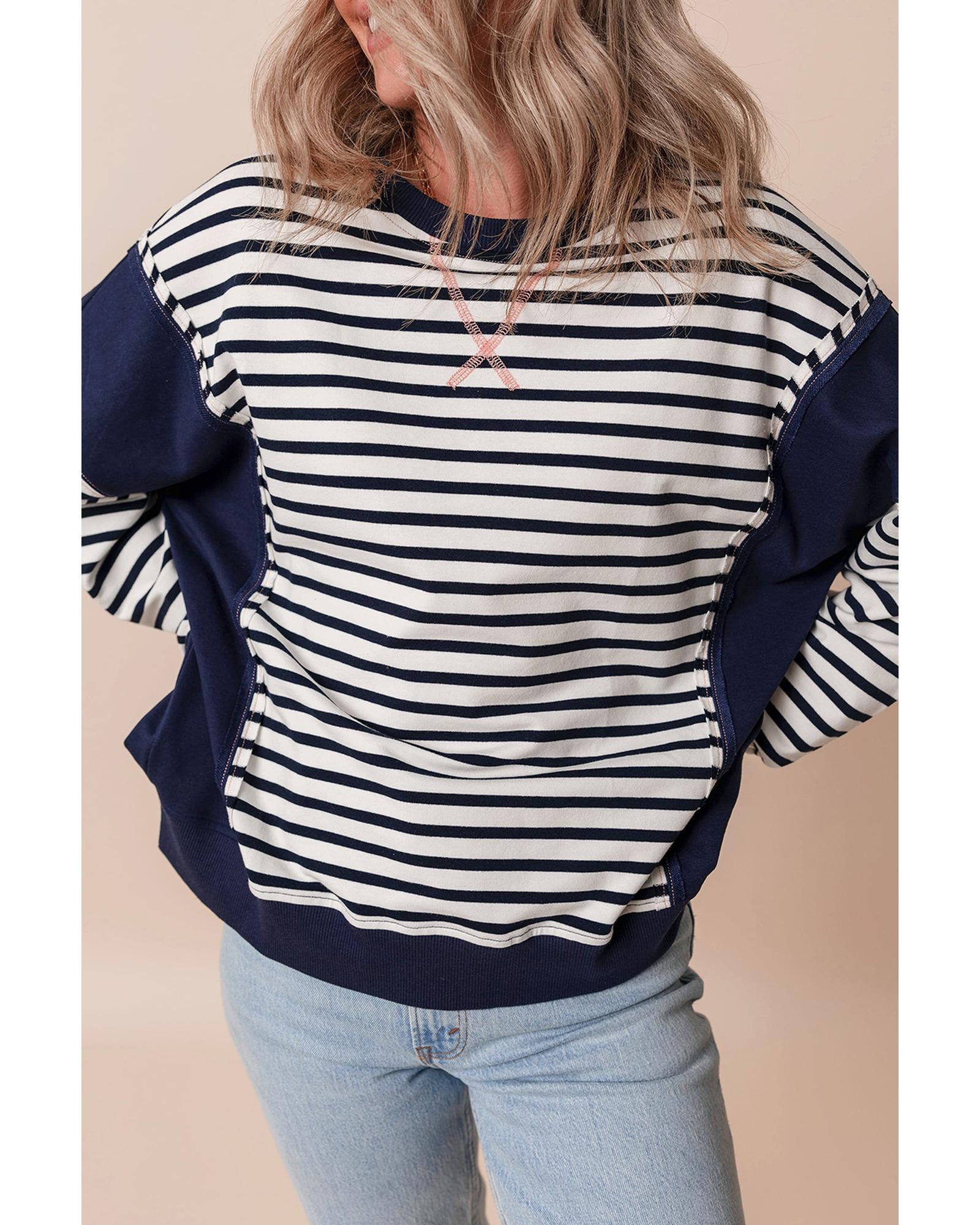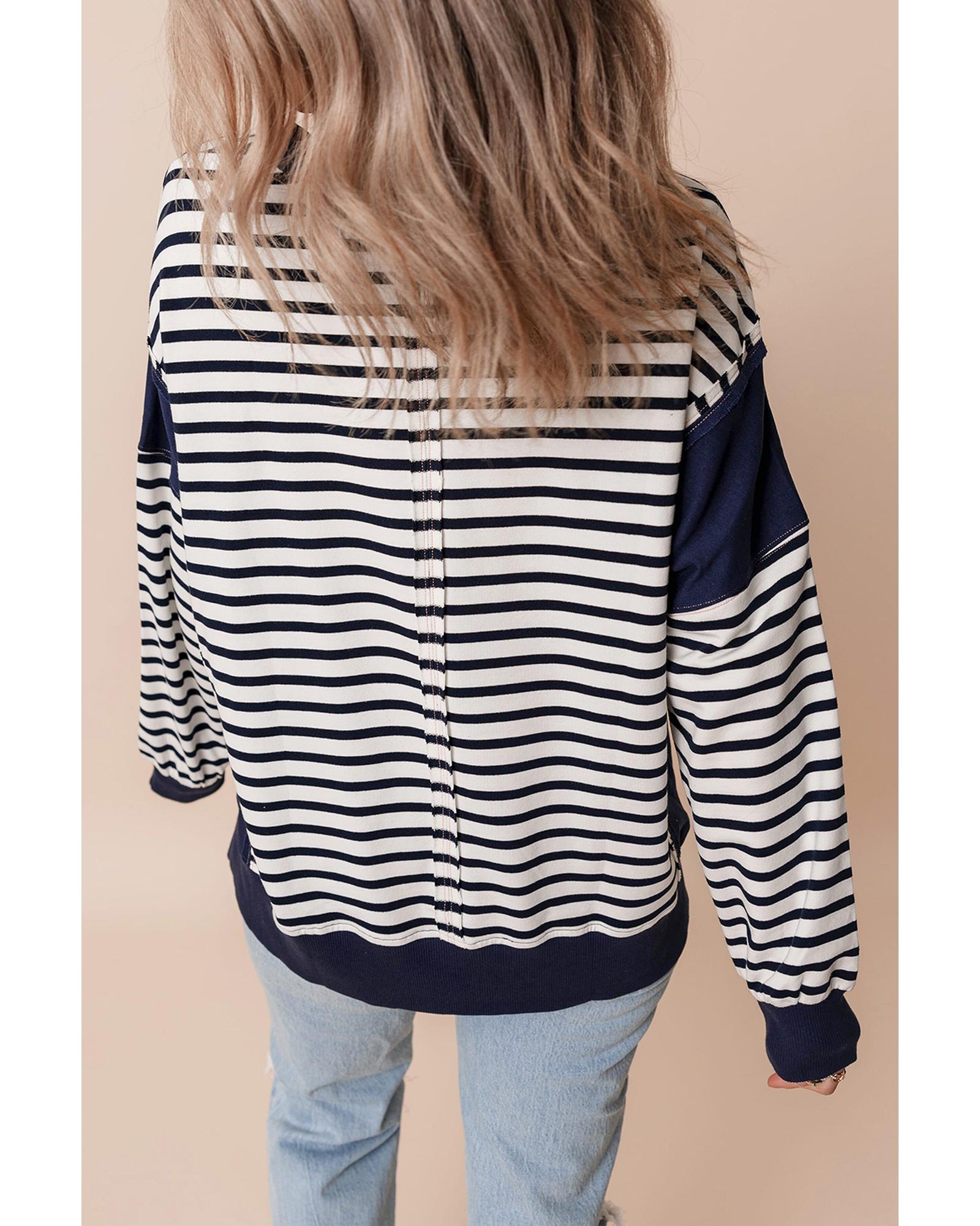 White Stripe Color Block Exposed Seam Loose Fit Sweatshirt – M
