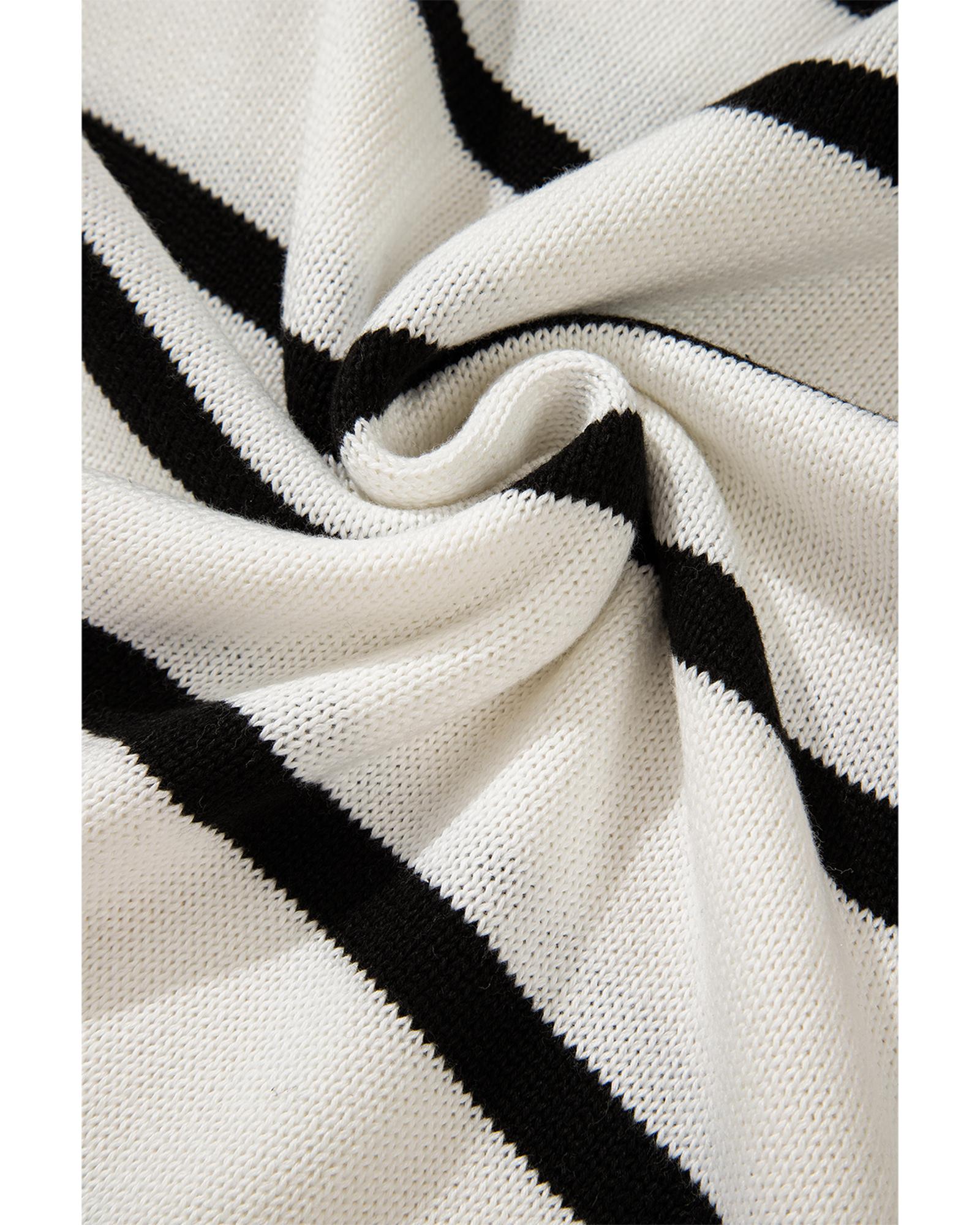 White Stripe Color Contrast Drop Shoulder Crew Neck Sweater – M