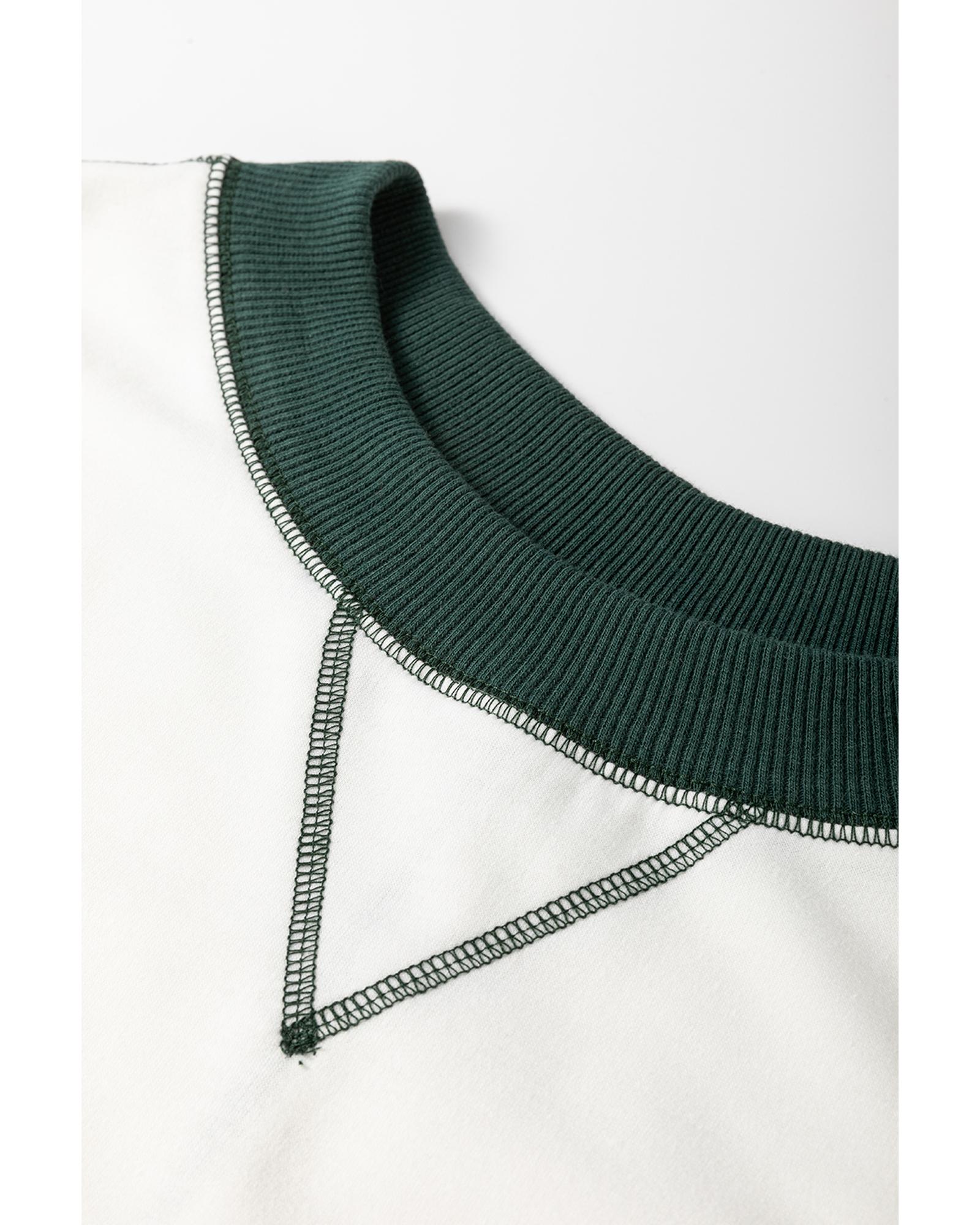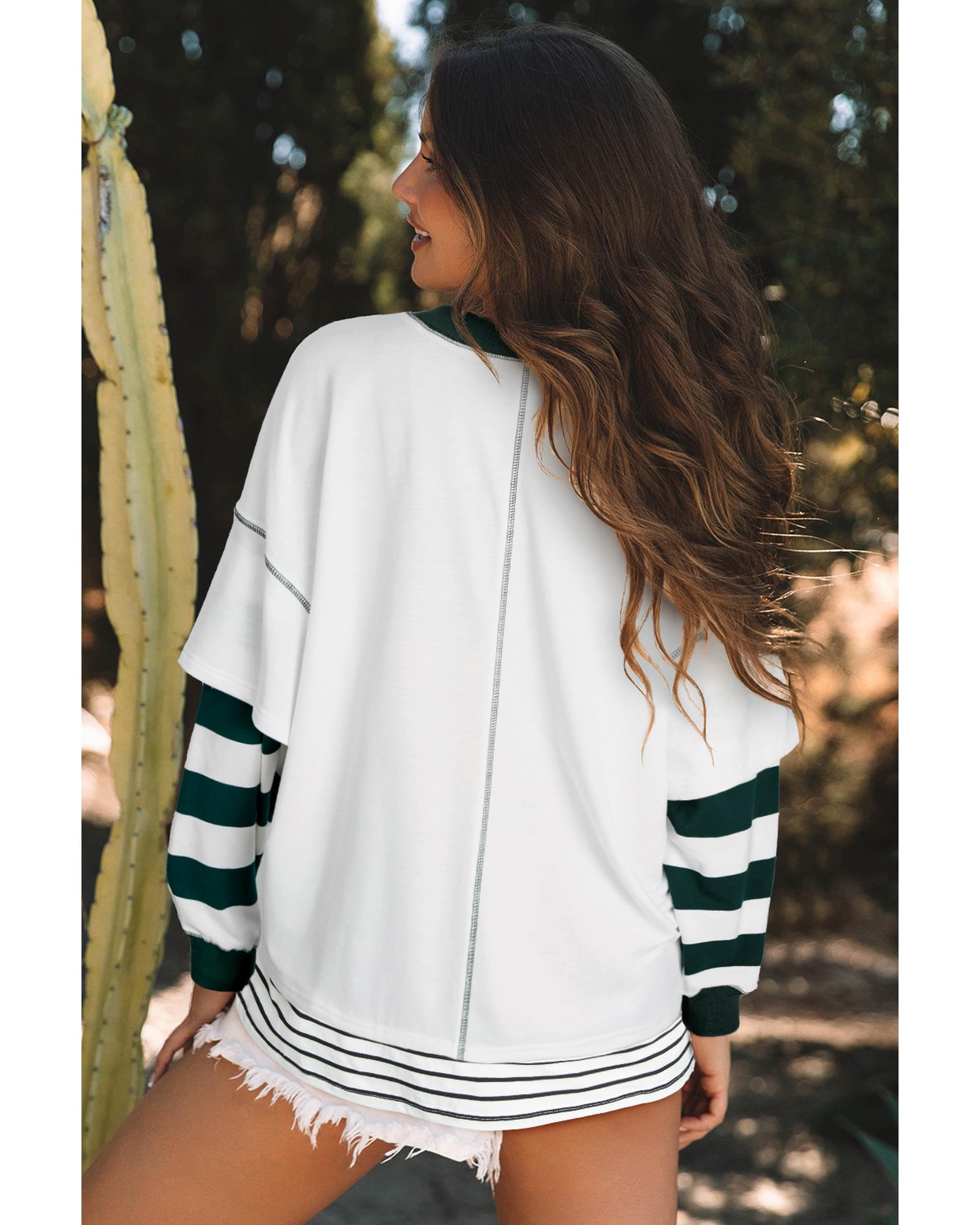 White Stripe Colorblock Sleeve Exposed Seam Fake-2-Piece Sweatshirt – M