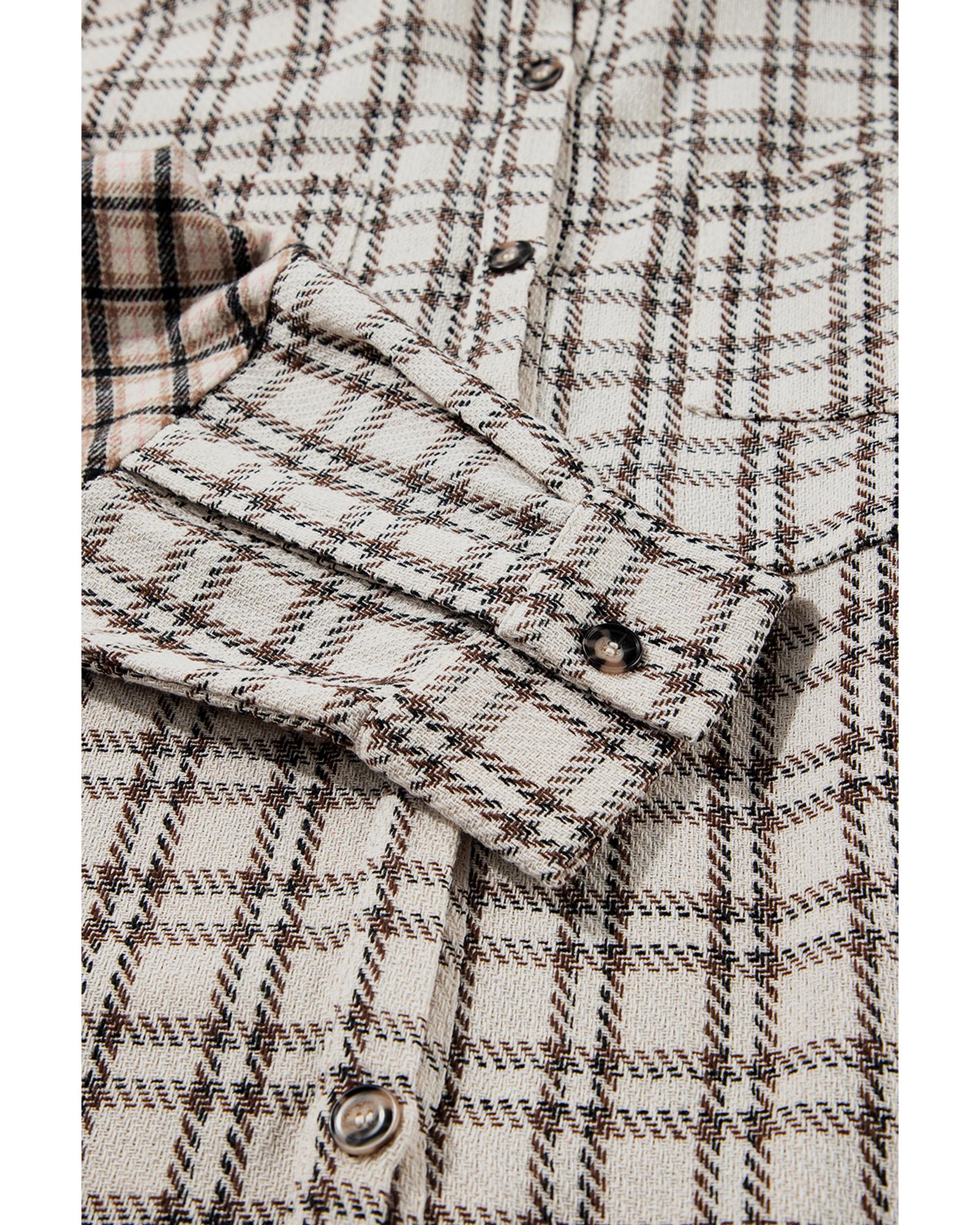 White Stripe Plus Size Plaid Buttoned Raw Hem Tunic Shirt Dress – 2X