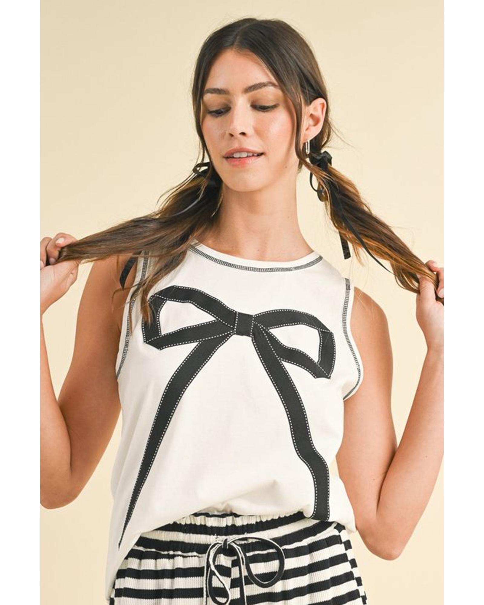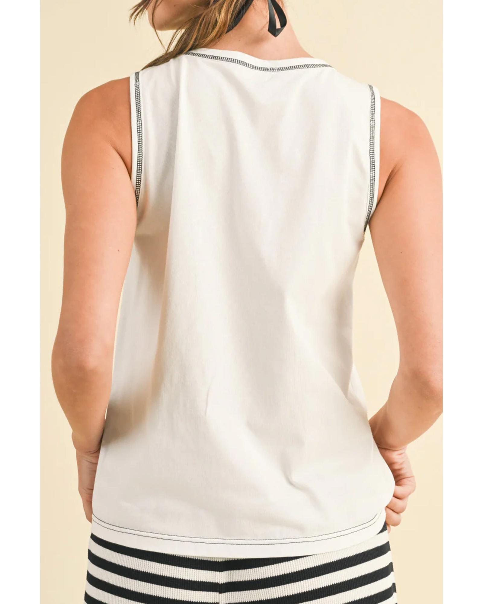 White Sweet Bow Stitching Trim Sleeveless Top – M