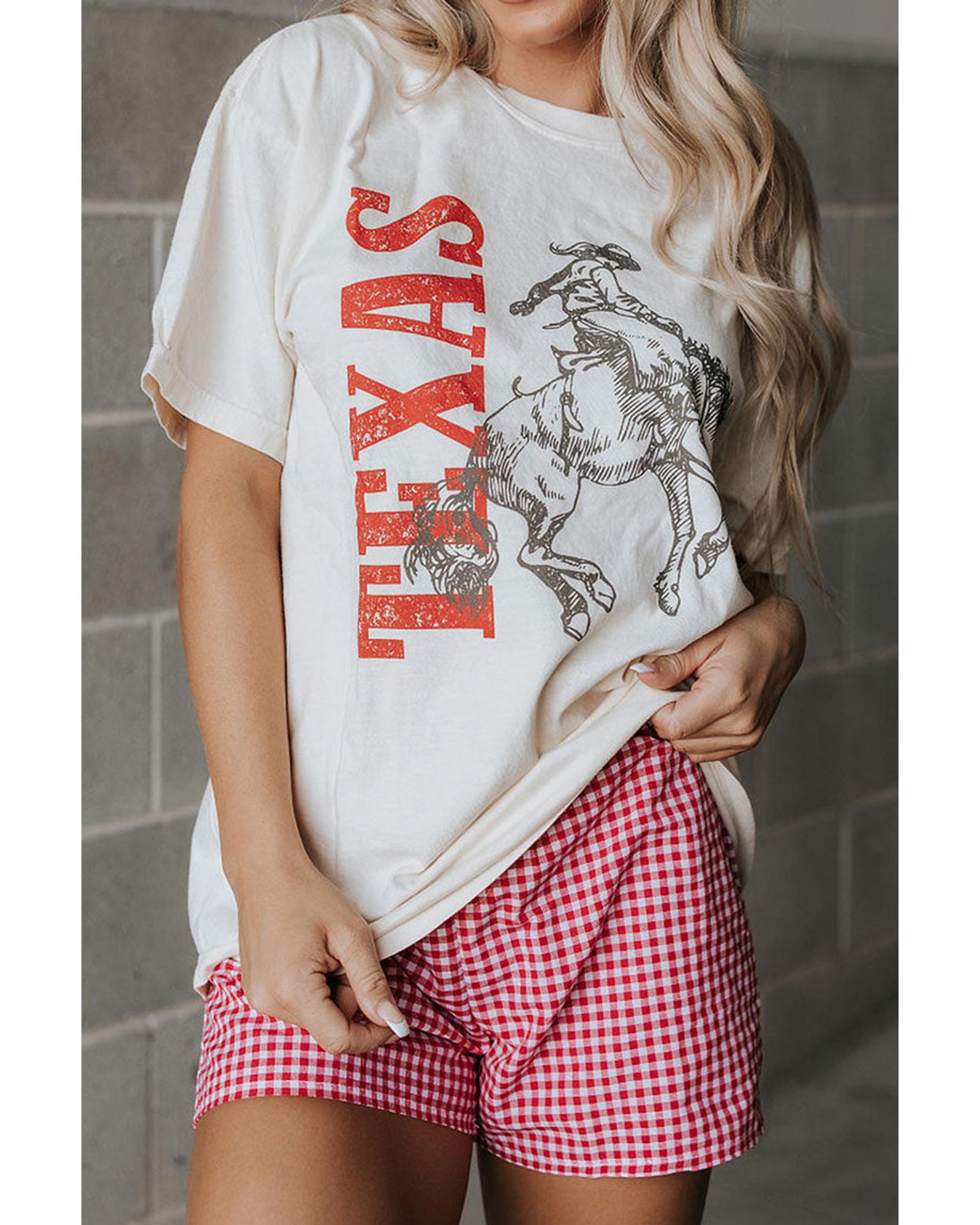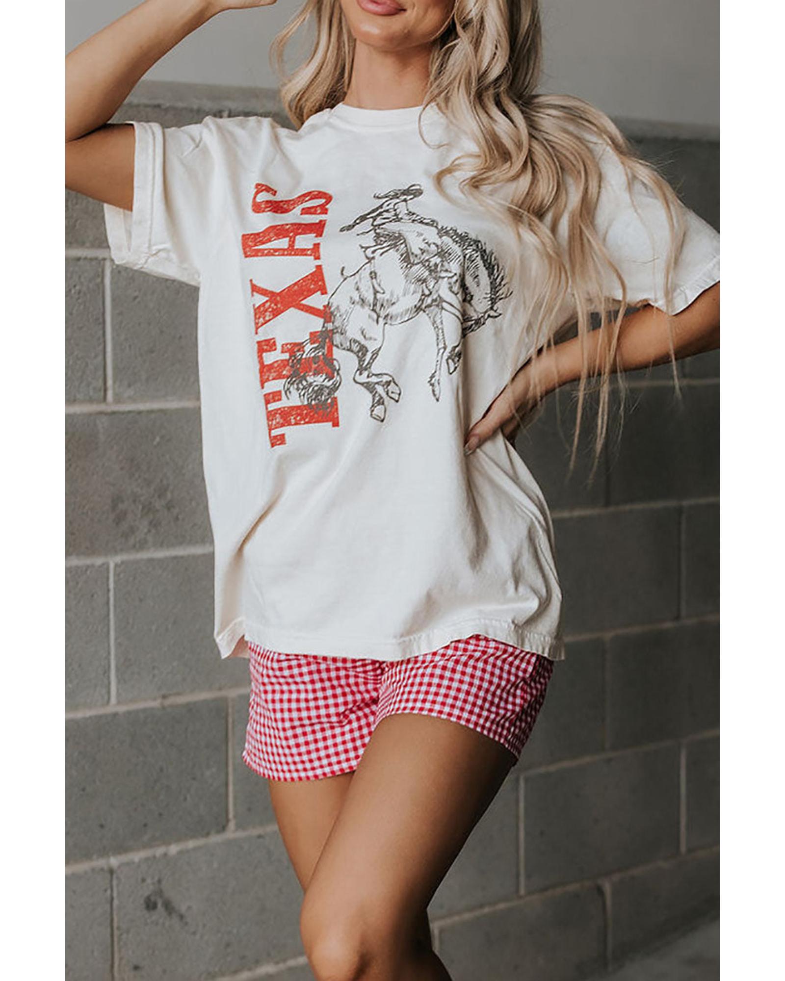 White TEXAS Cowboy Printed Western Fashion T Shirt – 2XL