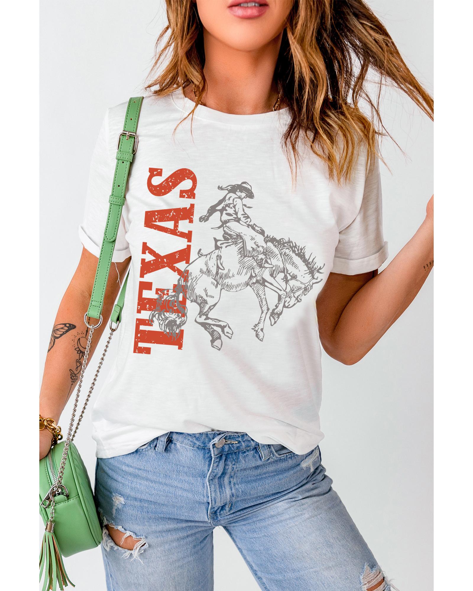 White TEXAS Cowboy Printed Western Fashion T Shirt – M