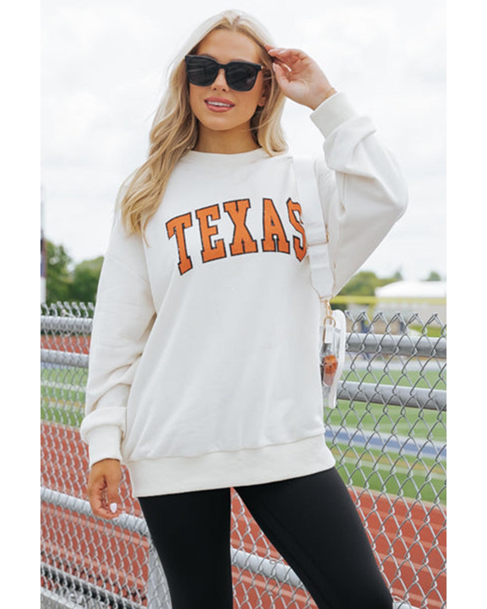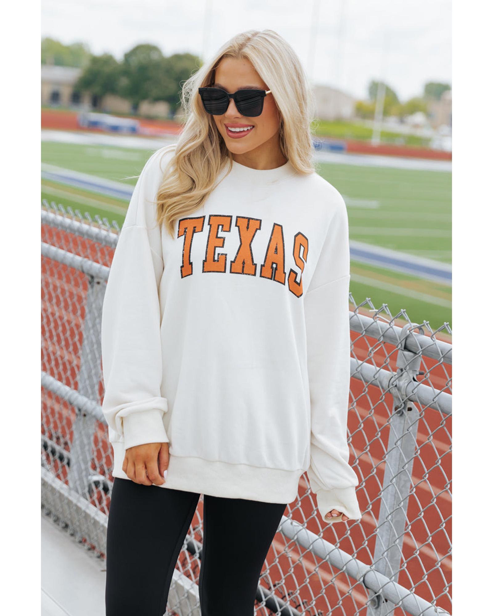 White TEXAS Graphic Drop Shoulder Crewneck Sweatshirt – M