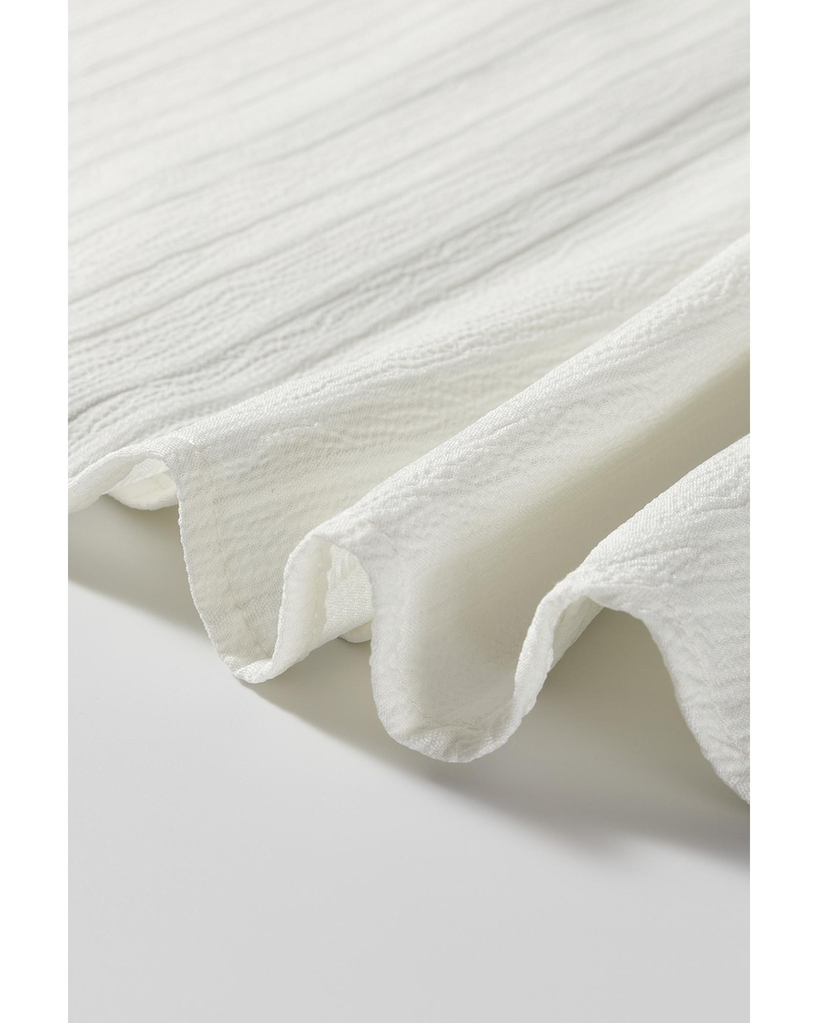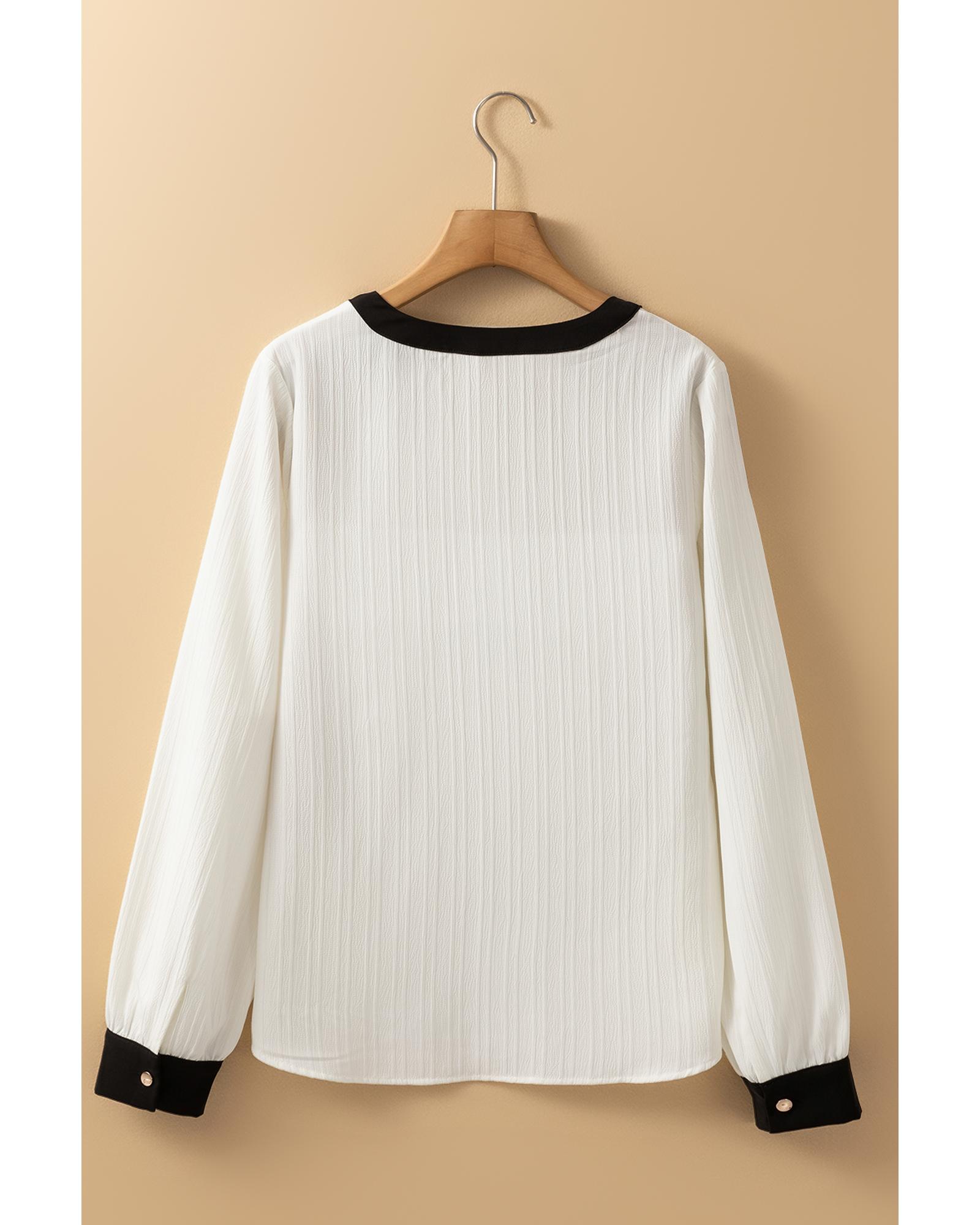 White Geometric Embroidered Long Sleeve Buttoned Blouse - M