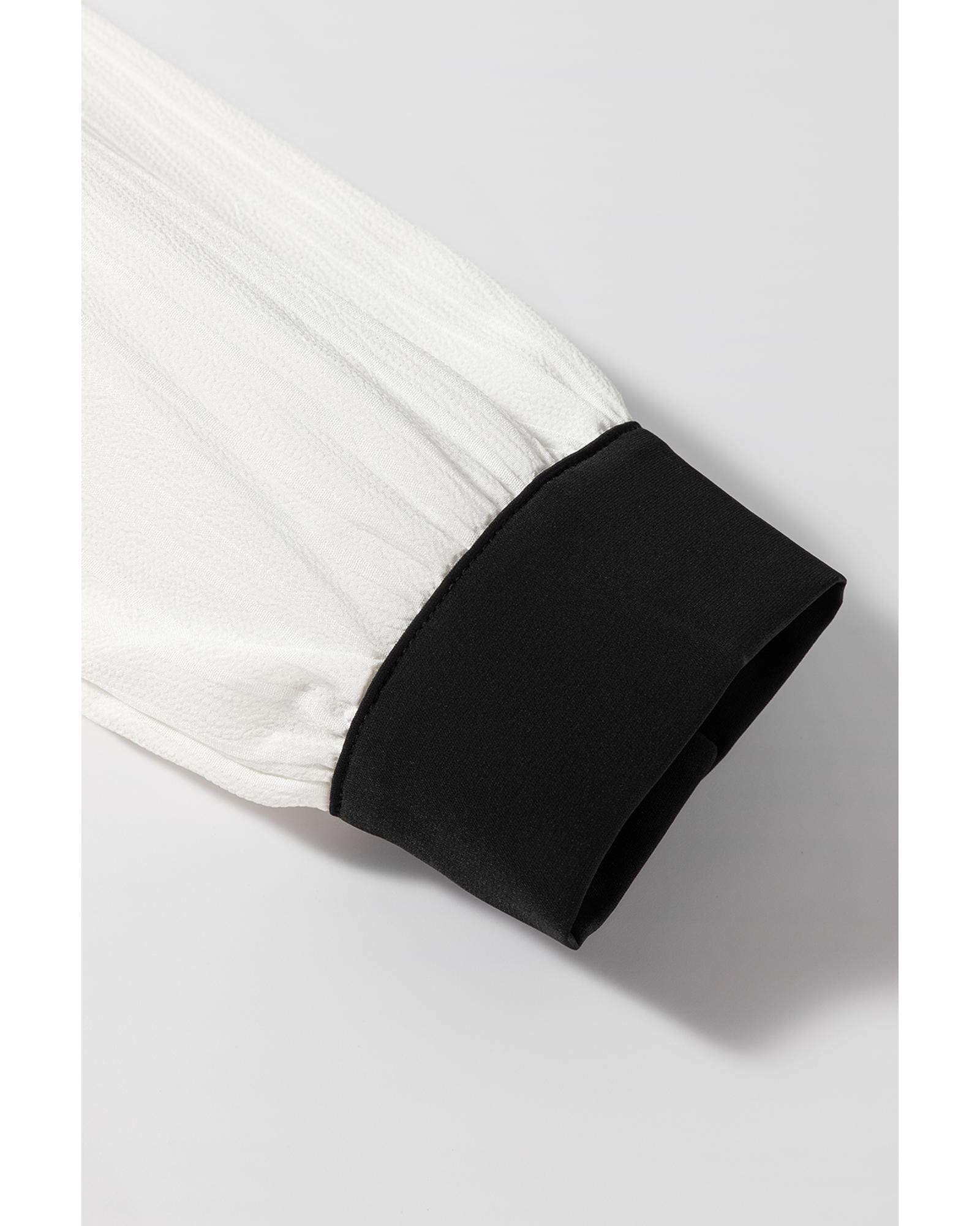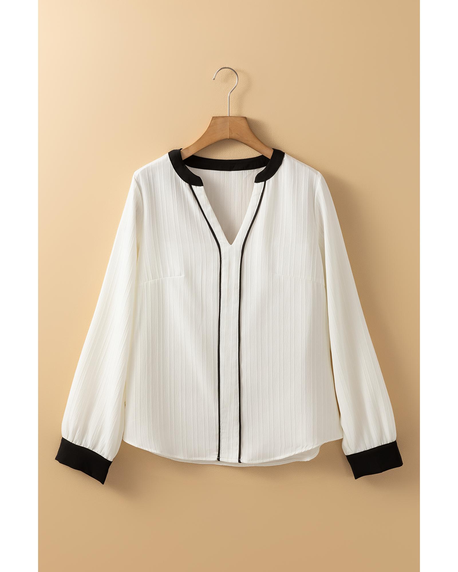 White Geometric Embroidered Long Sleeve Buttoned Blouse - S Original price was: $62.99.Current price is: $33.99.