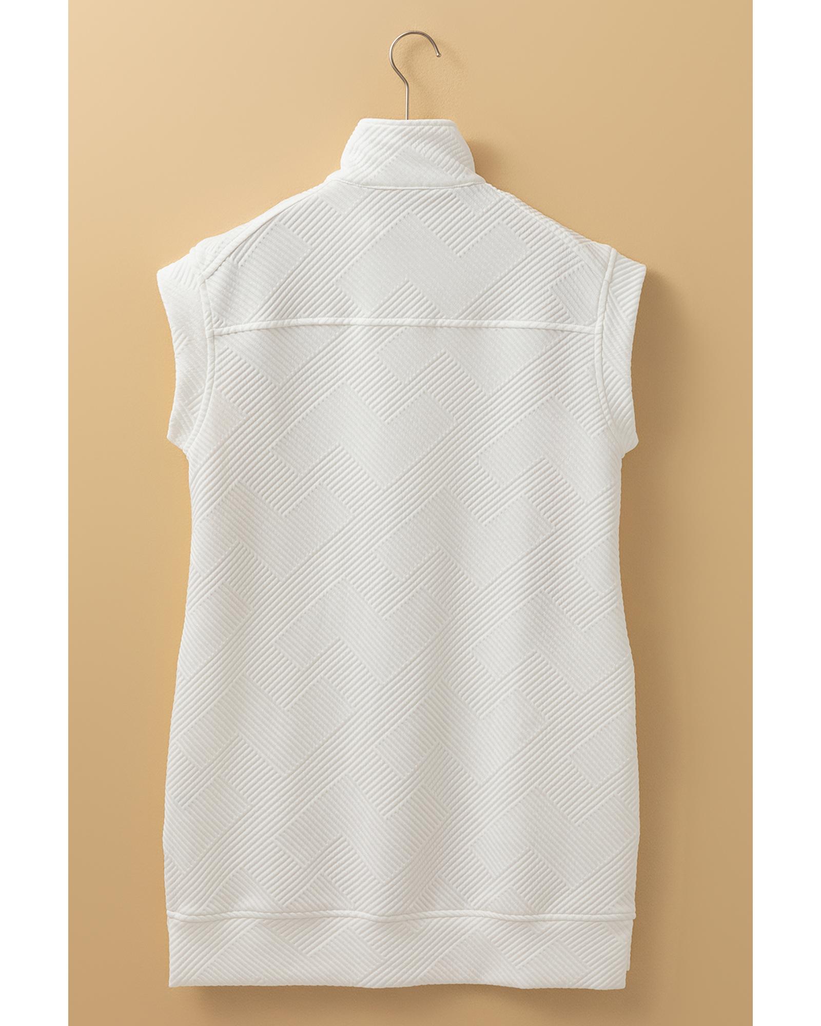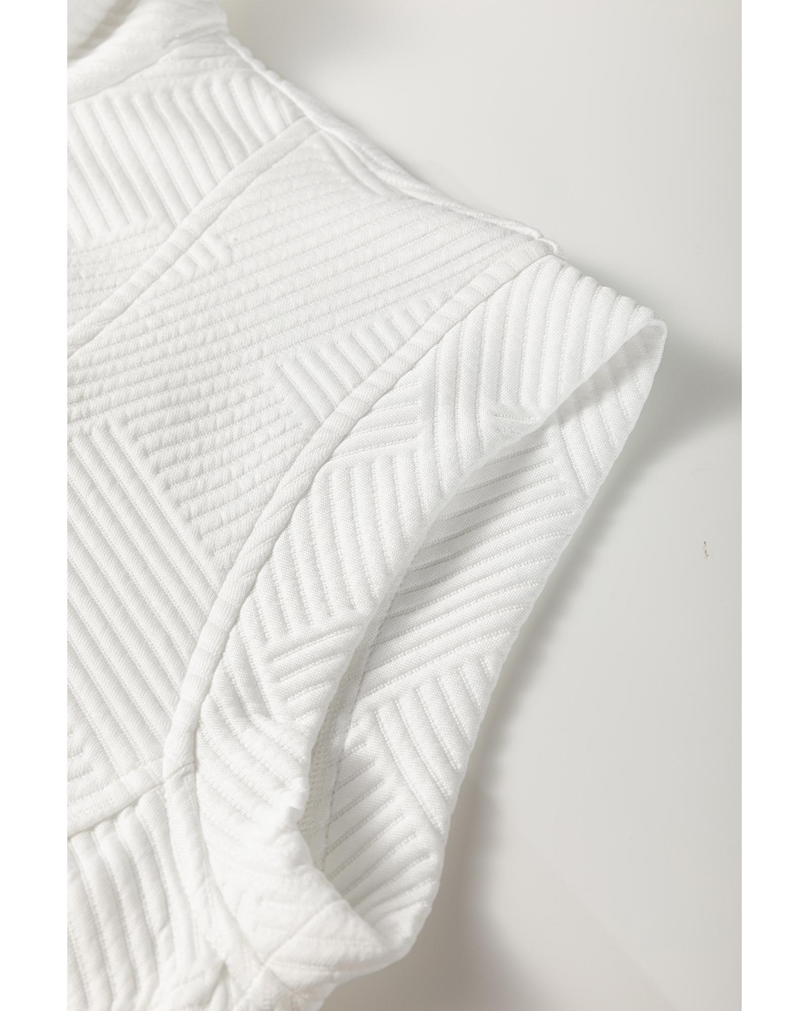 - White Textured Half Zip Collared Cap Sleeve Mini Dress