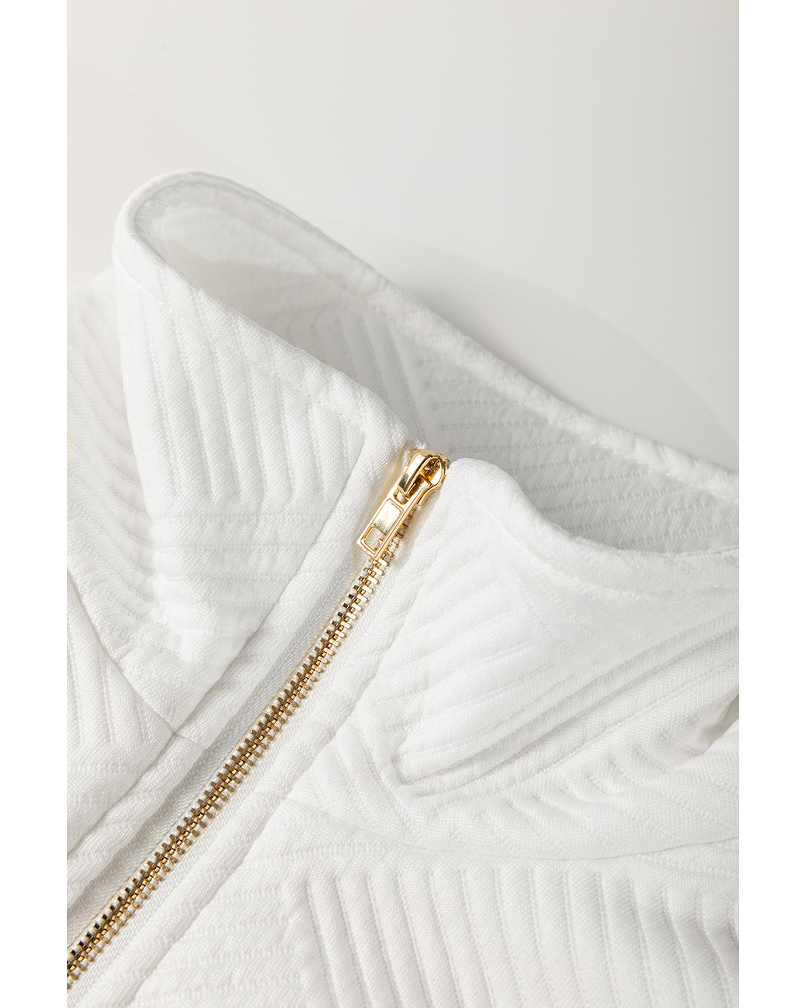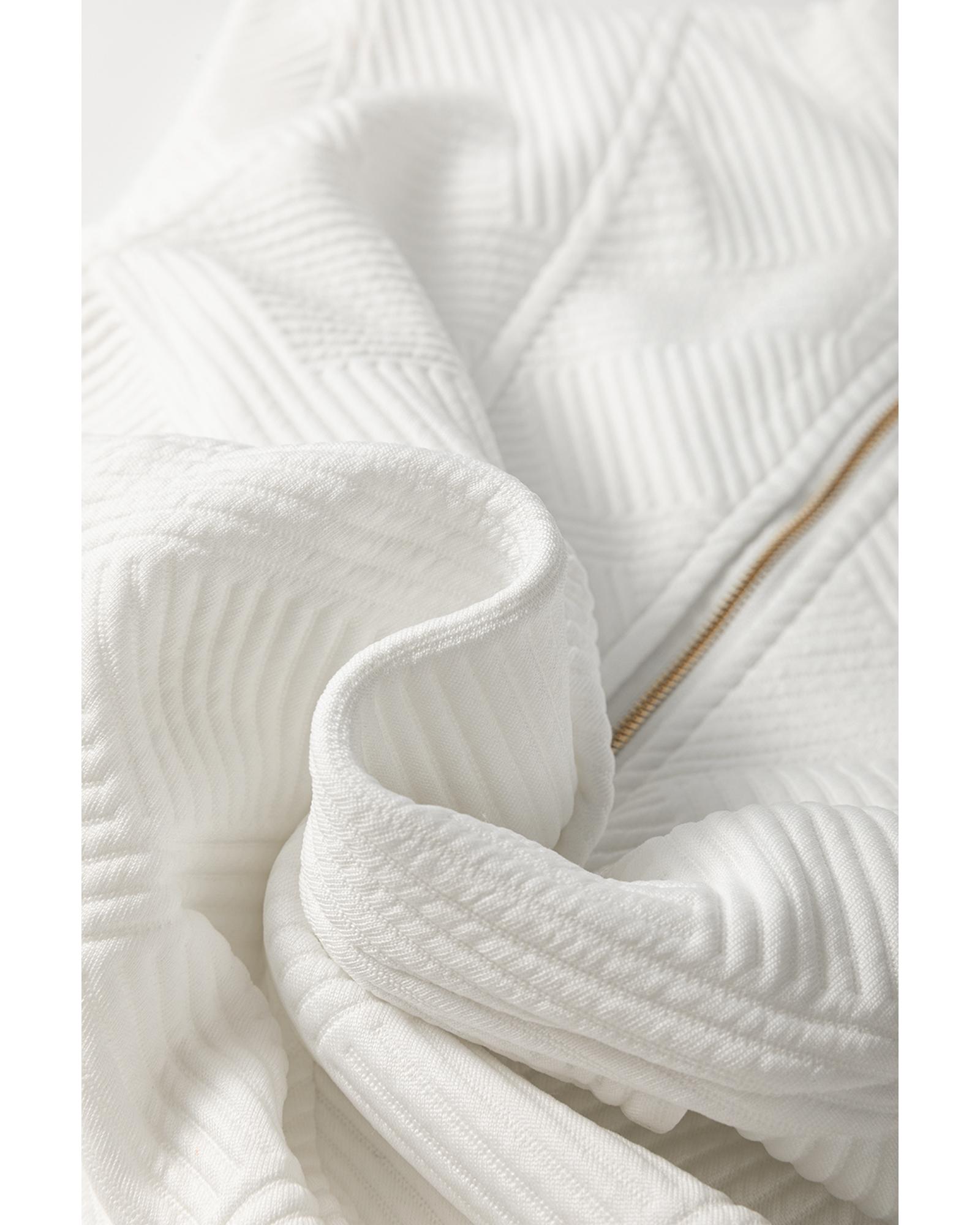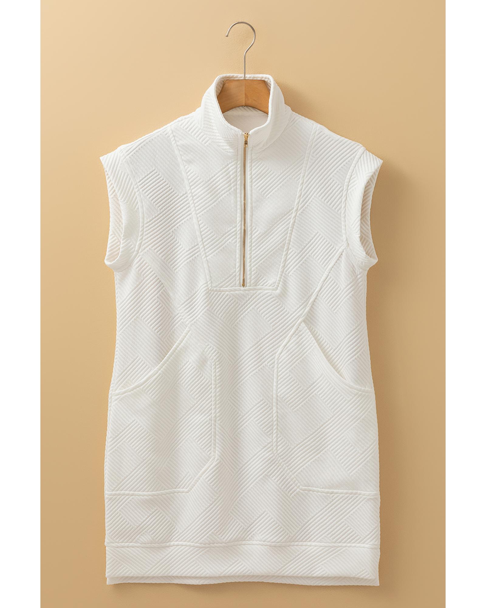 - White Textured Half Zip Collared Cap Sleeve Mini Dress