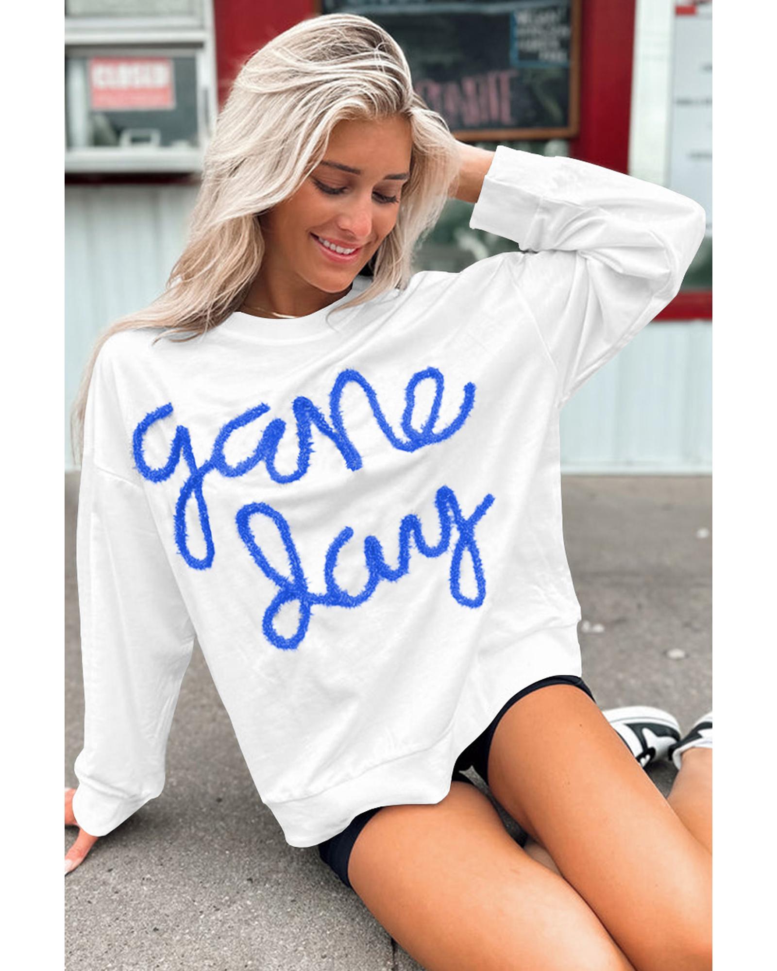 • White Tinsel Game Day Drop Shoulder Graphic Sweatshirt