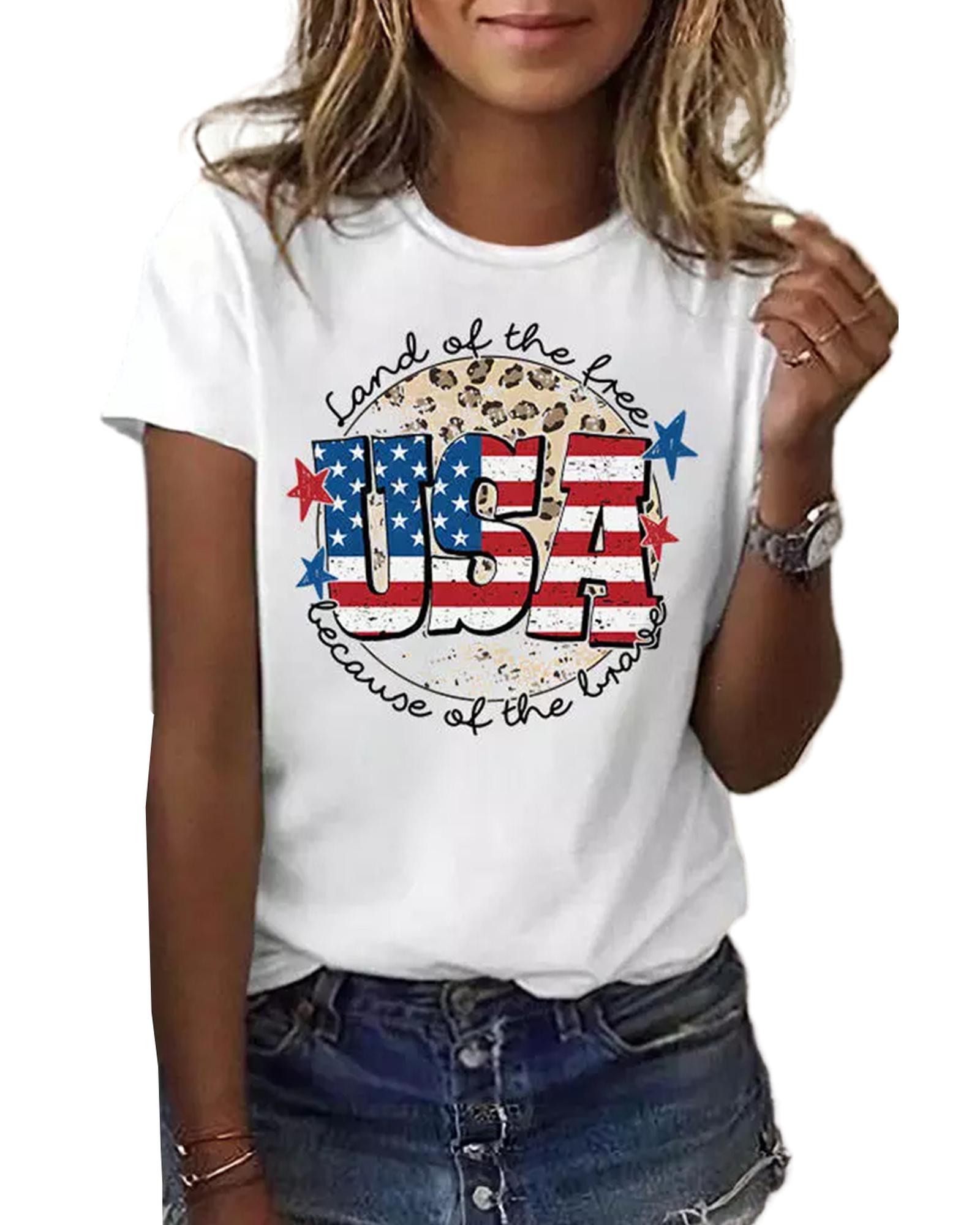 White USA Flag Slogan Graphic T - shirt Short sleeve t