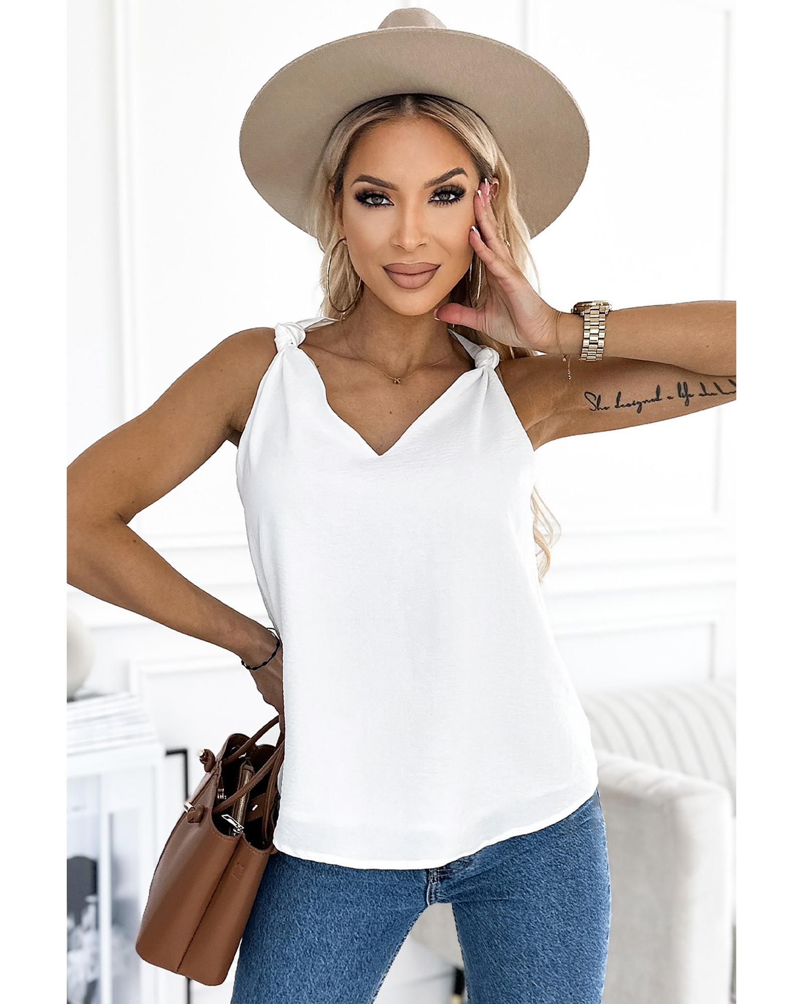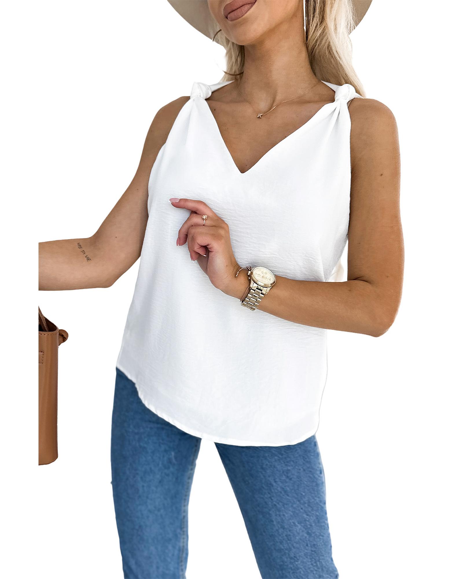 • White V Neck Knotted Shoulder Vest