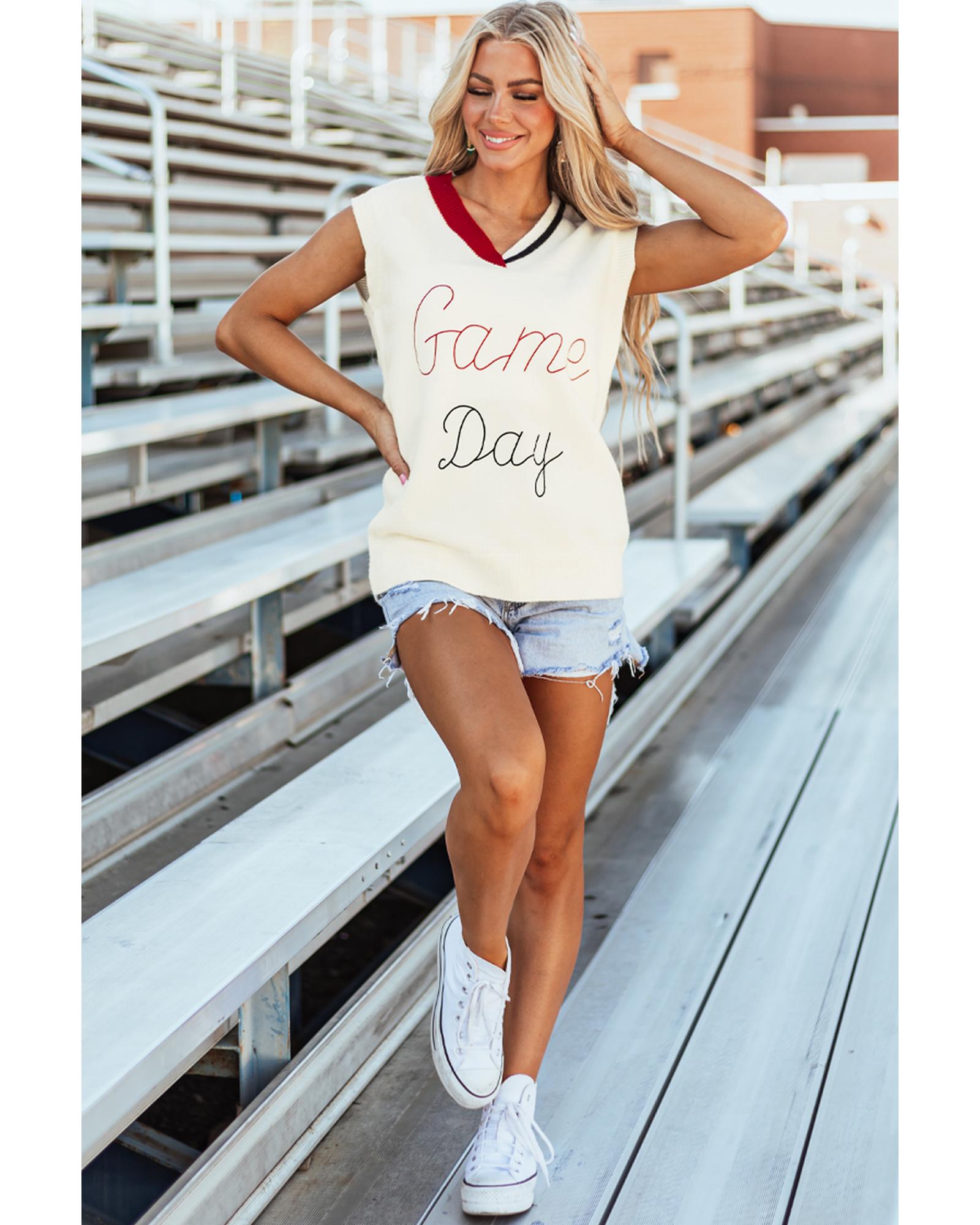 Khaki Stripe Color Block Quarter Zip Collar Short Sleeve Sweater Dress - L