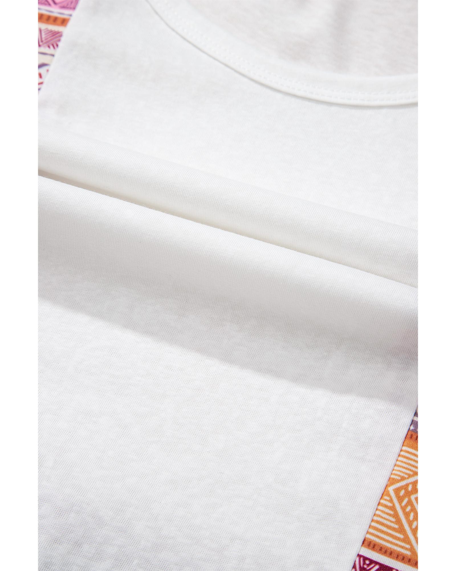 White Western Aztec Print Patchwork Ruffled Tunic Long Sleeve Babydoll Top – M