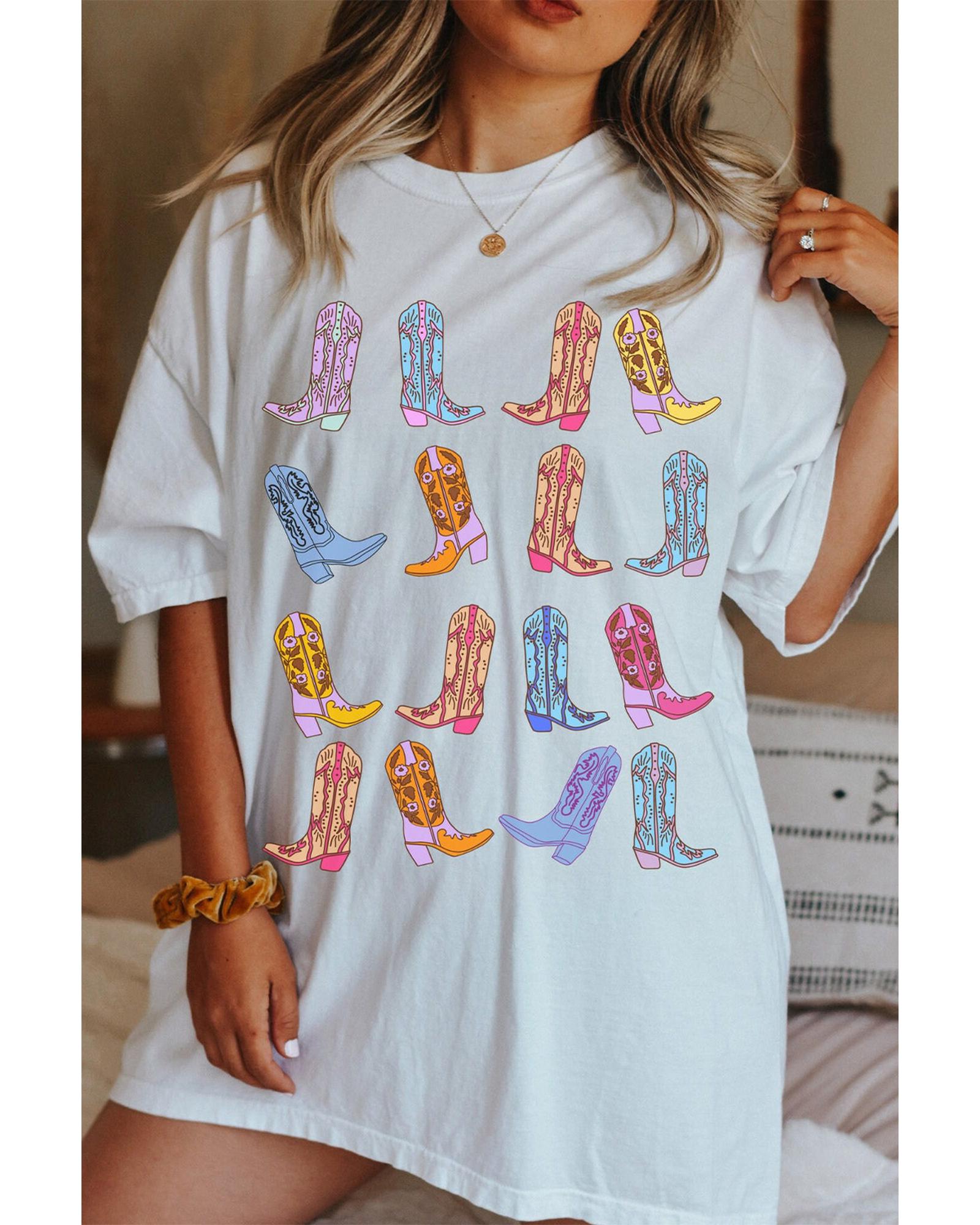 White Western Cowgirl Boots Graphic Crewneck Tunic T Shirt – M