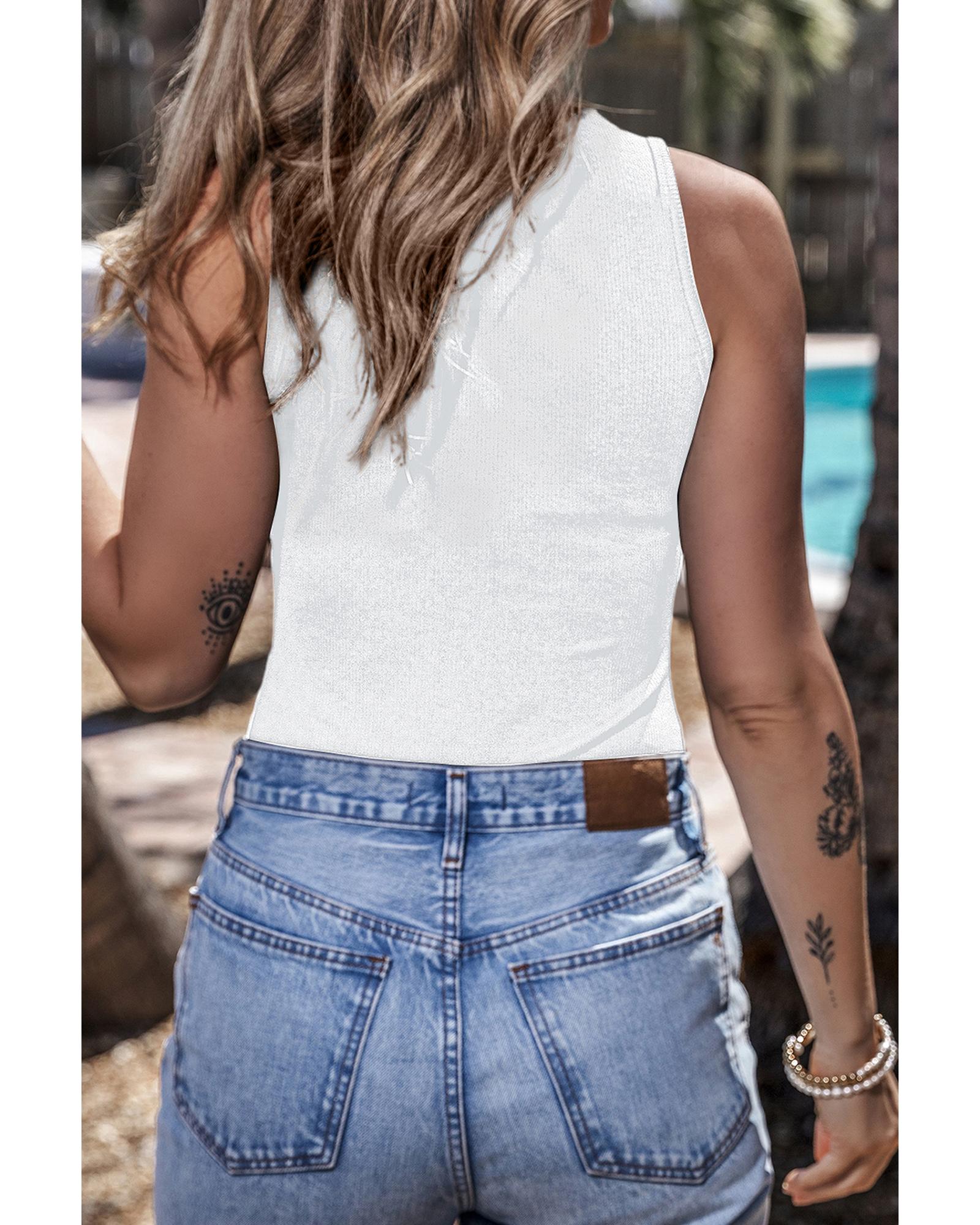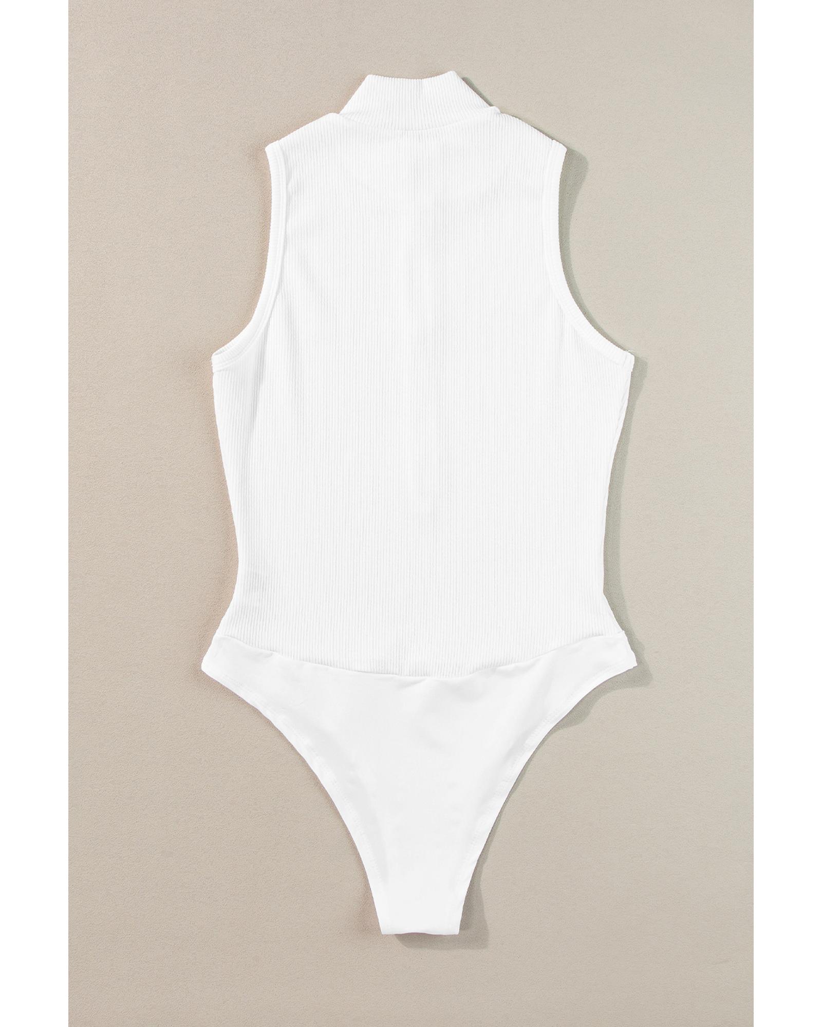 White Zip up Mock Neck Ribbed Sleeveless Bodysuit – XL