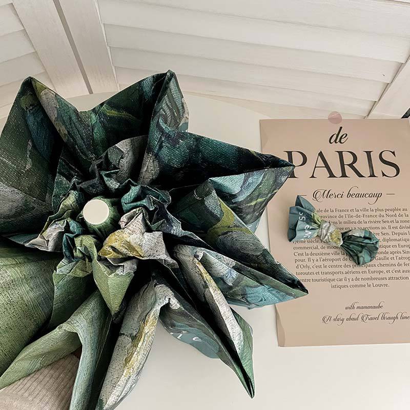 Stay protected from the sun and rain with our delightful patterned folding umbrella! This compact and lightweight umbrella features a beautiful design, perfect for adding a touch of elegance to your everyday style. Its five-fold, six-rib construction makes it incredibly portable, easily fitting into your purse or backpack.