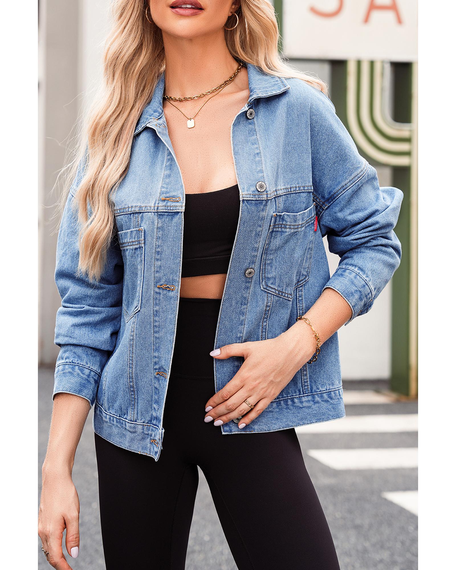 Wild Wind Washed Oversize Pocketed Denim Jacket - S