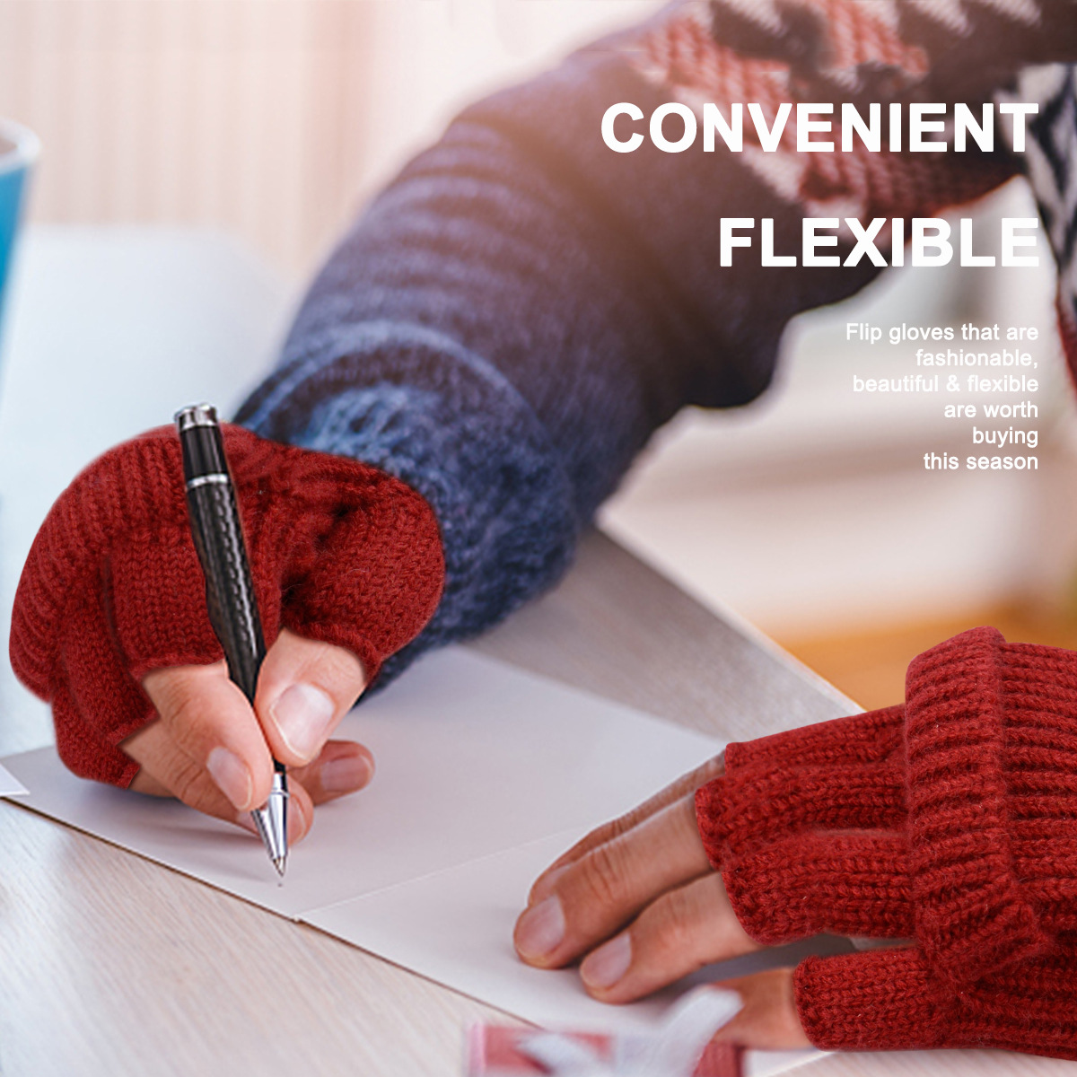 Wine Red Winter Convertible Mittens – Warm Knitted 2-in-1 Fingerless Gloves with Flip Top Cover for Cold Weather