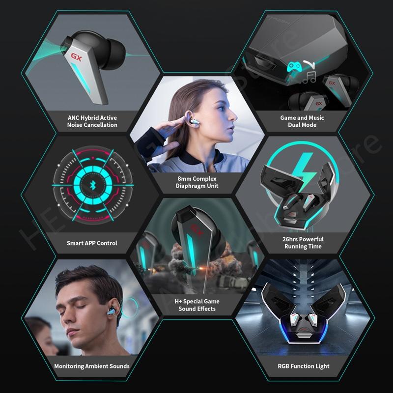 • 8mm composite diaphragm unit and intelligent APP control for game/music dual mode