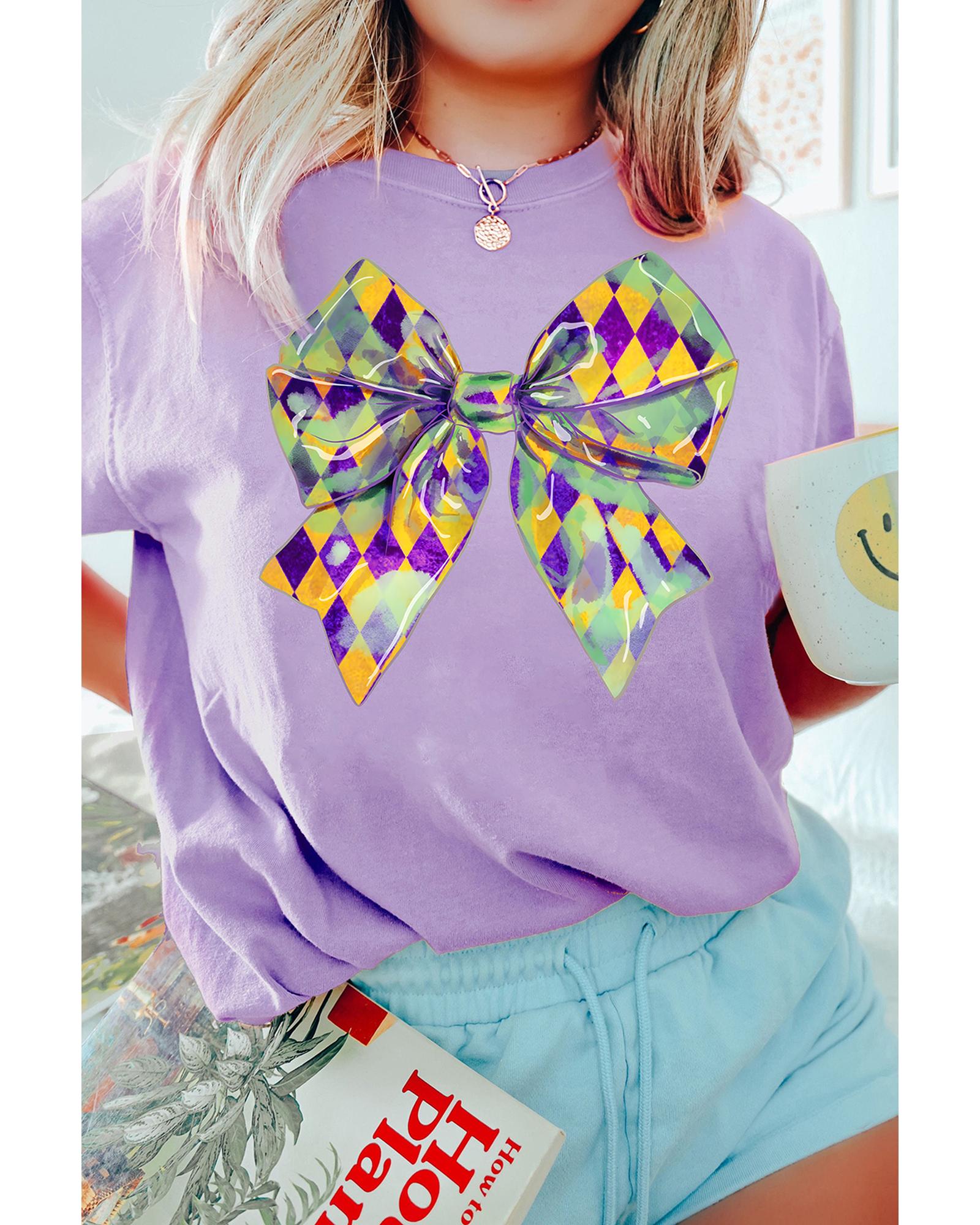 Wisteria Mardi Gras Bowknot Pattern Crew Neck T Shirt – M