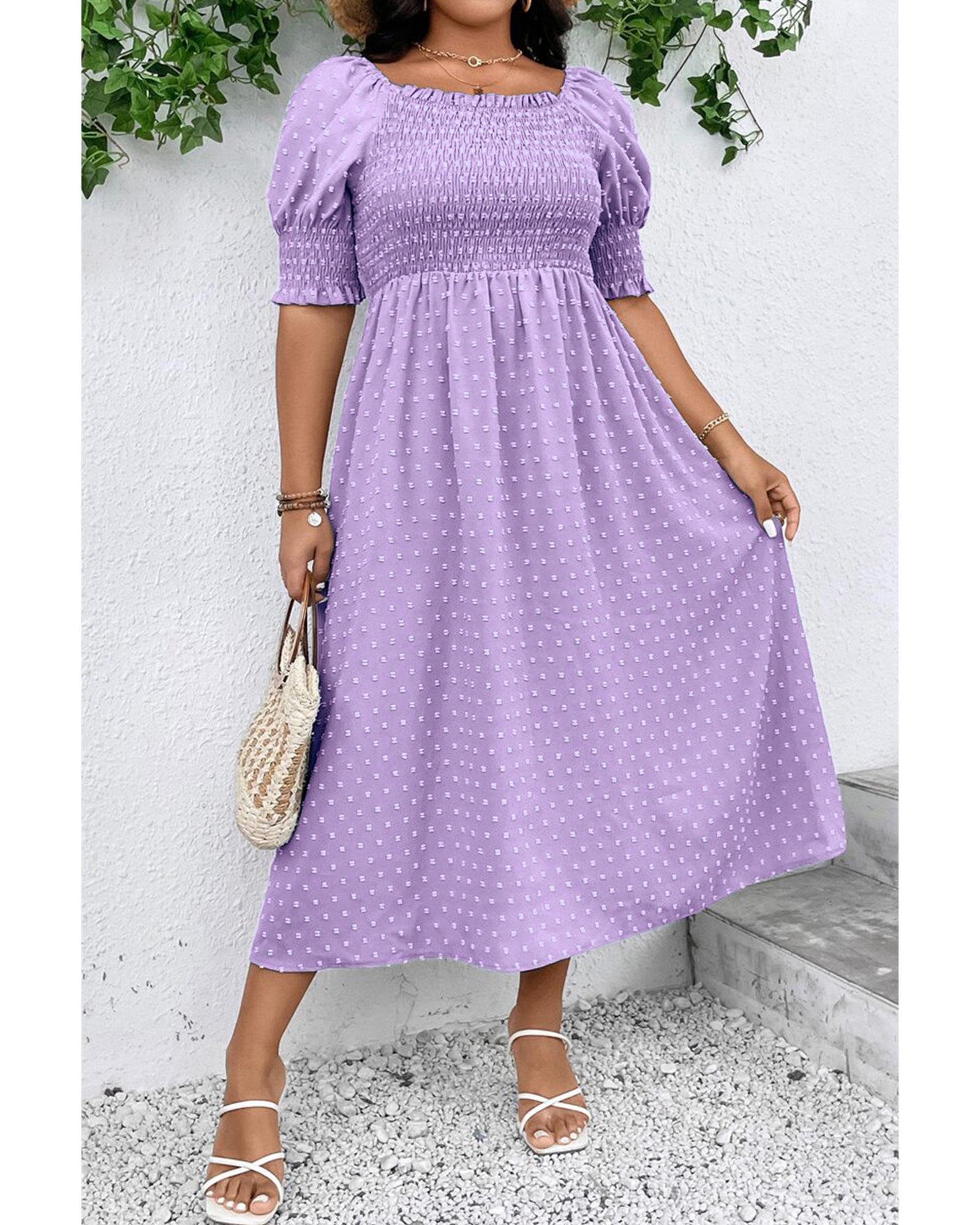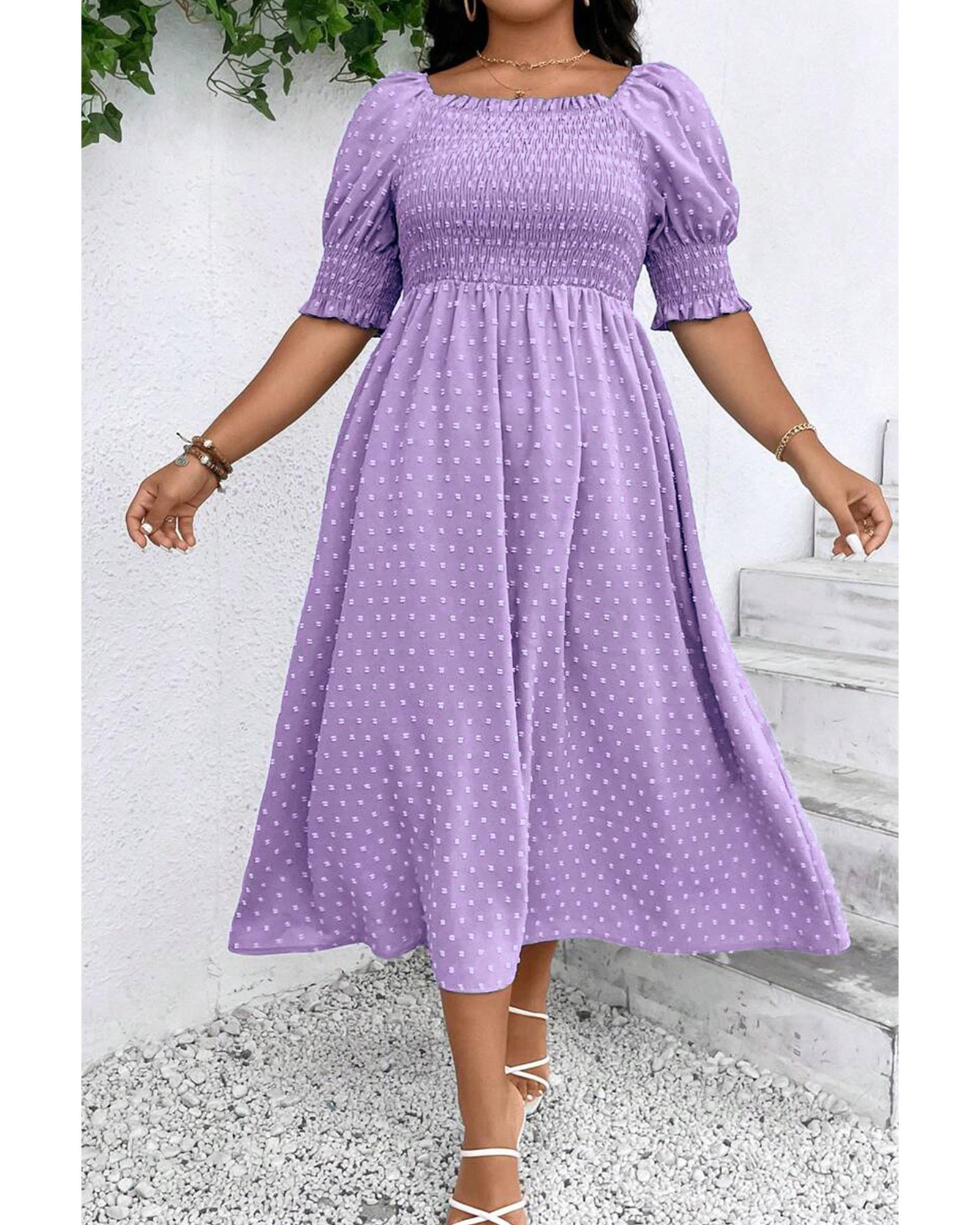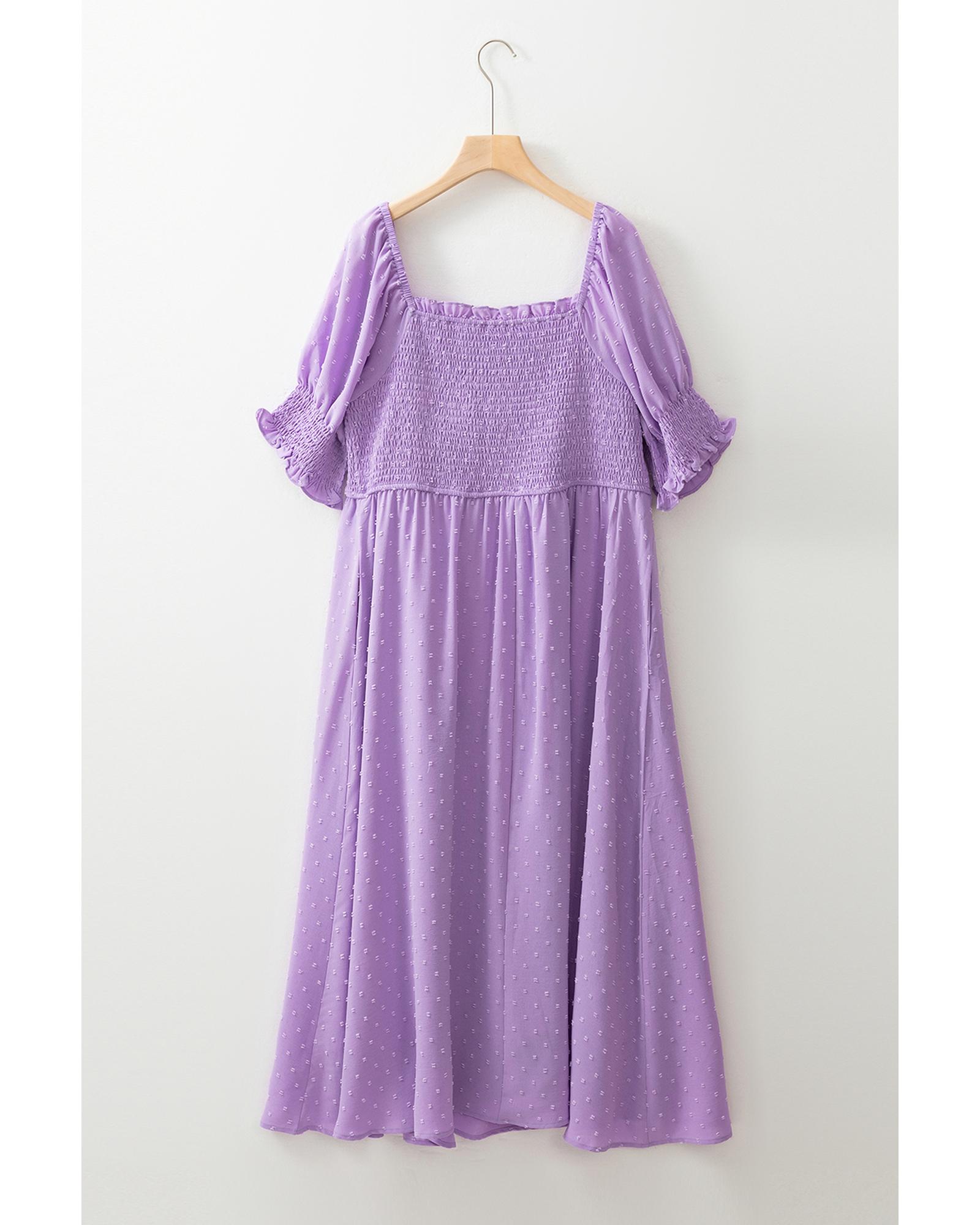 Wisteria Swiss Dot Smocked Frilled Neckline Short Sleeve Plus Size Dress – 2X