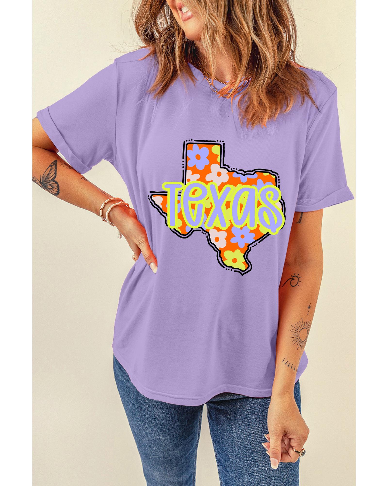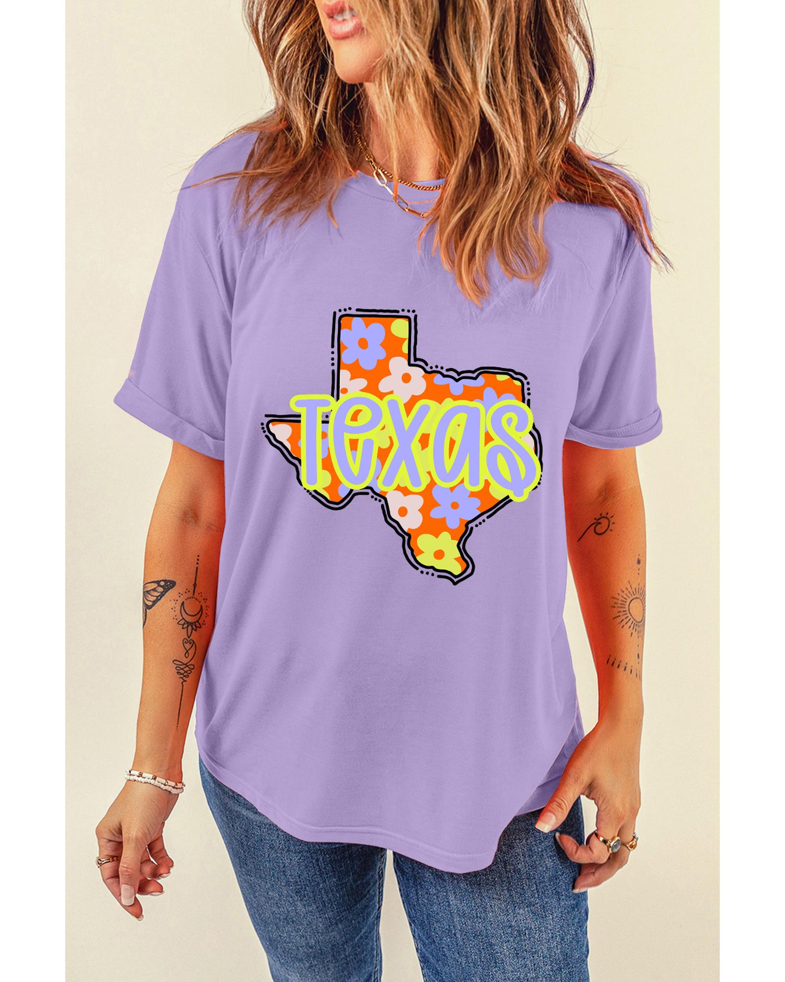 Wisteria TEXAS Flower Print Crew Neck T Shirt – S