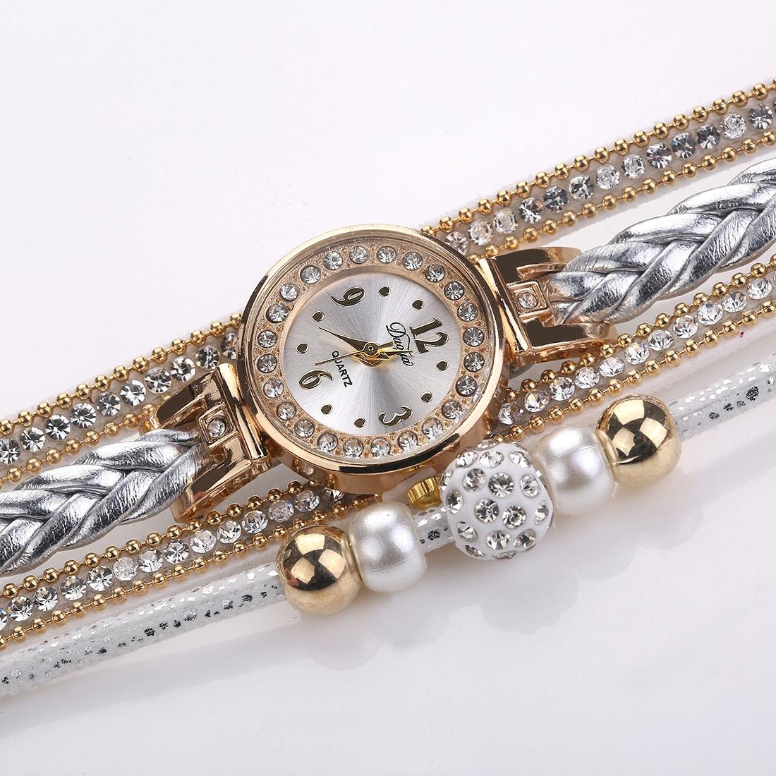 • 1 x D249 Woven Twisted Pearls Round Analog Quartz Wrist Bracelet Watch For Women Beige