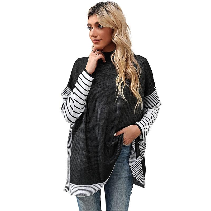 • 1 x Women Long Sleeve Mock Neck Striped Knit Sweater Casual Tops Black