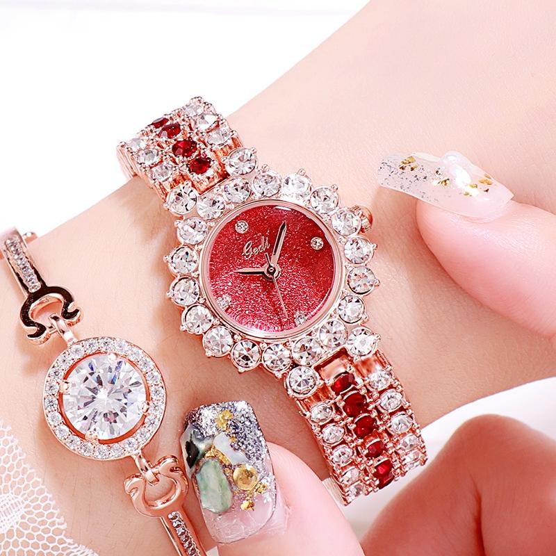 Women Quartz Bracelet Watch with Diamond Accents – Rose Gold Shell Red Plate