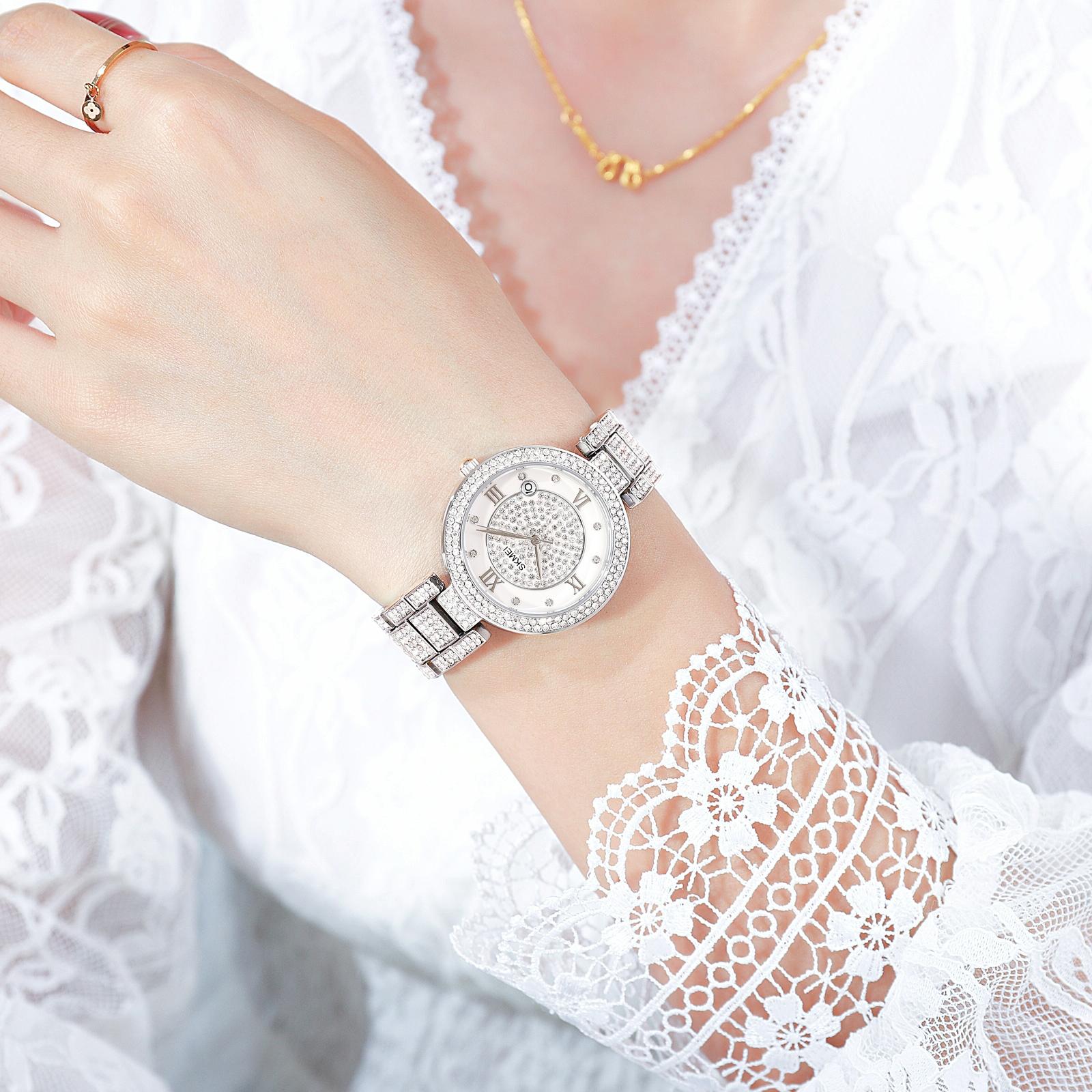 • 1 x 1739 Diamond Roman Numerals Round Dial Quartz Watch For Women