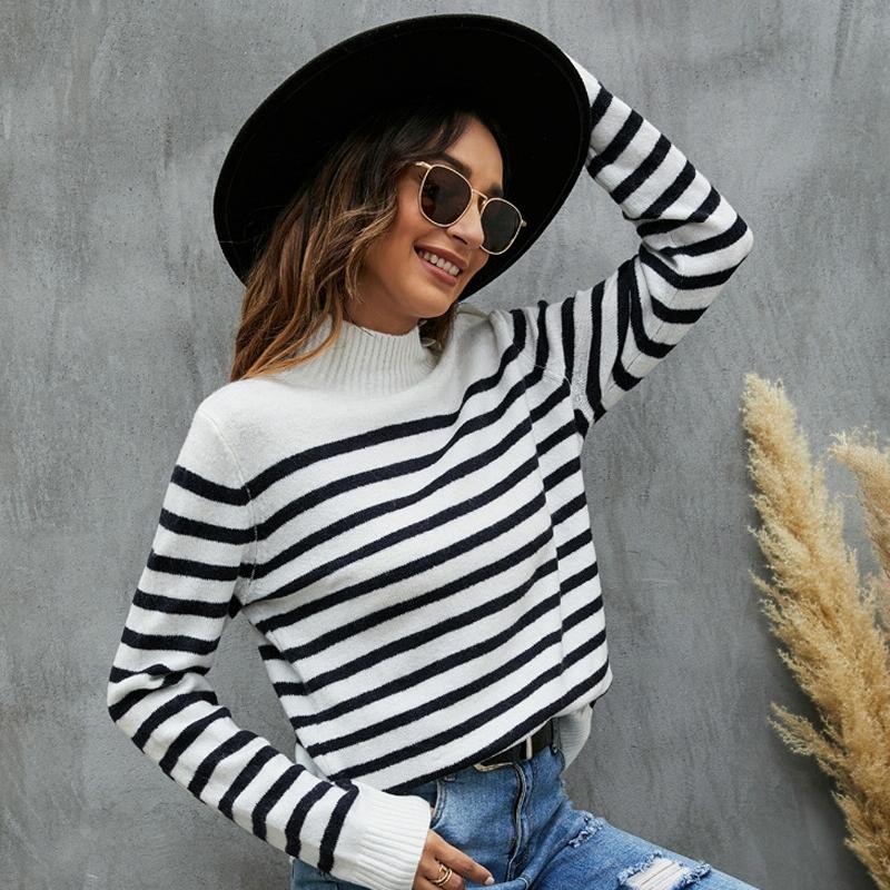 • 1 x Women Striped Knitwear Loose Stand-Up Collar Pullover Sweater