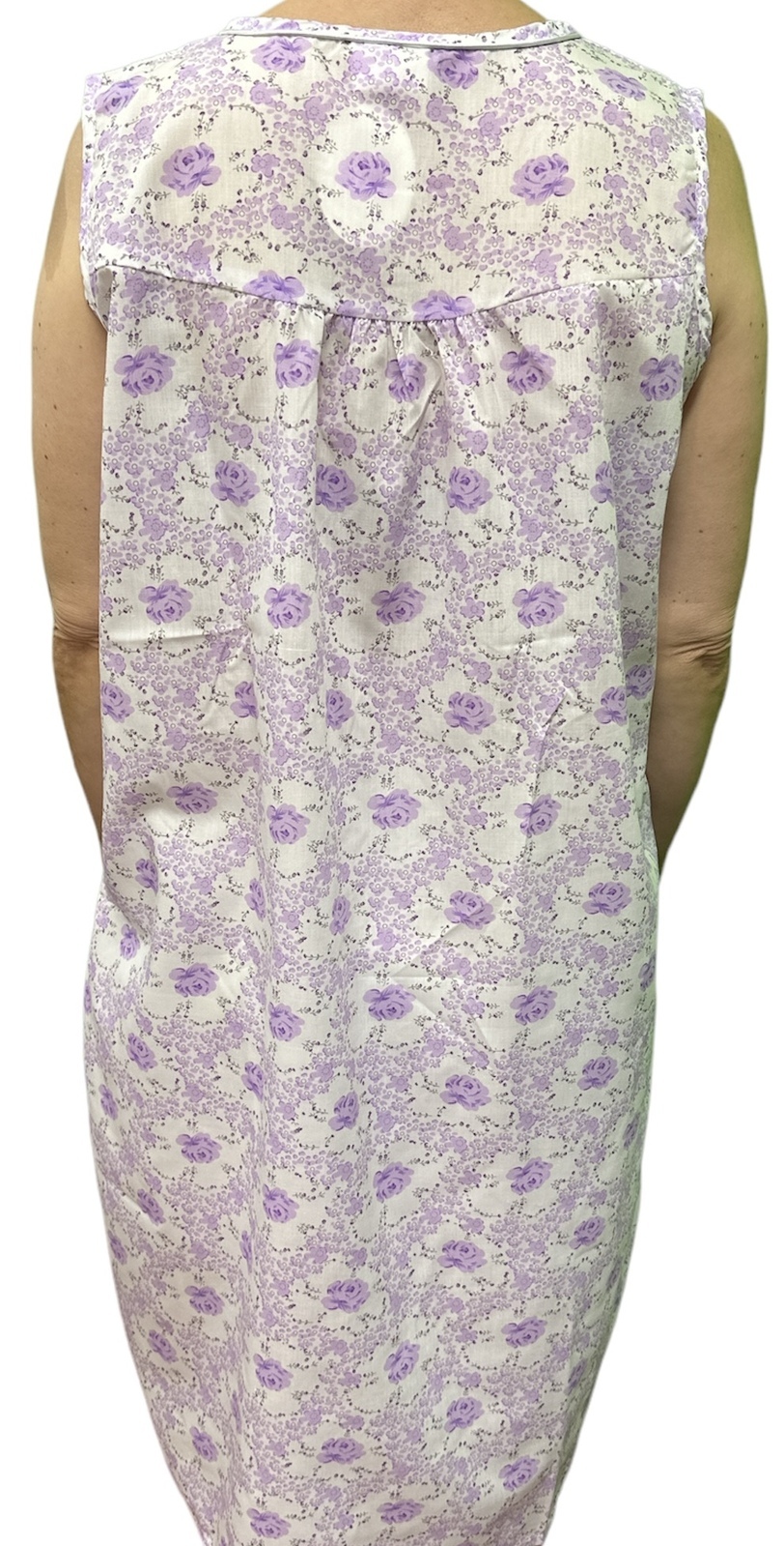 Womens 100% Cotton Sleeveless Nightie Gown Night Dress Pyjamas PJ Pajamas Sleep - Lilac - 12