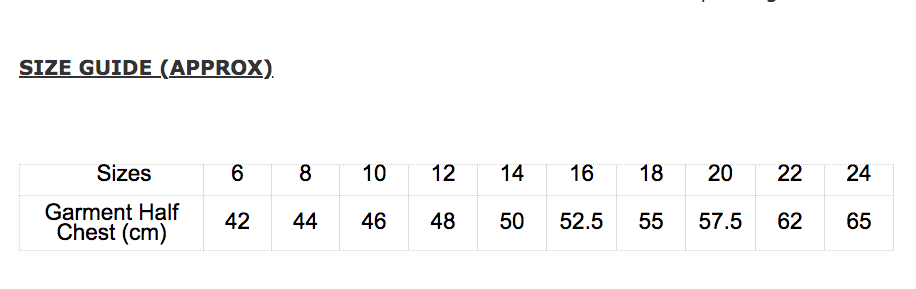 SIZE GUIDE (APPROX)