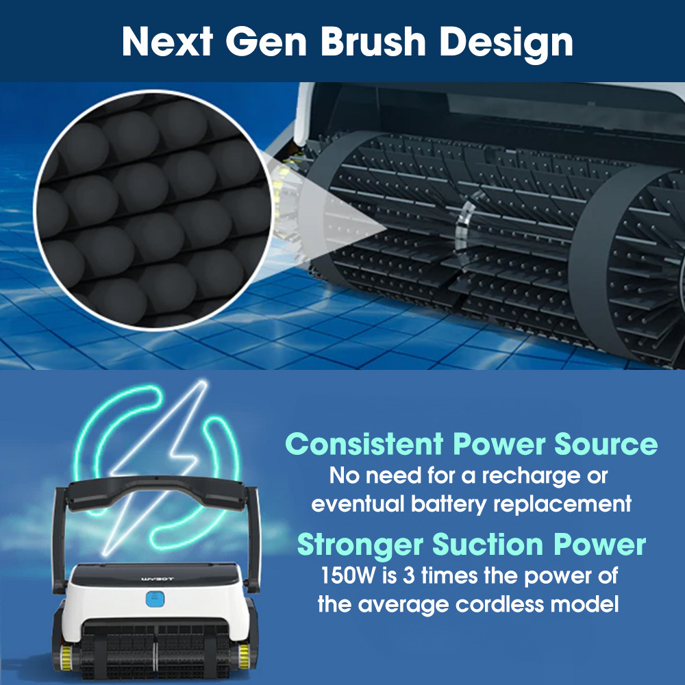 The WYBOT Grampus 800 is a simple plug and play robotic pool cleaner that allows for a convenient, hassle-free and efficient cleaning experience.