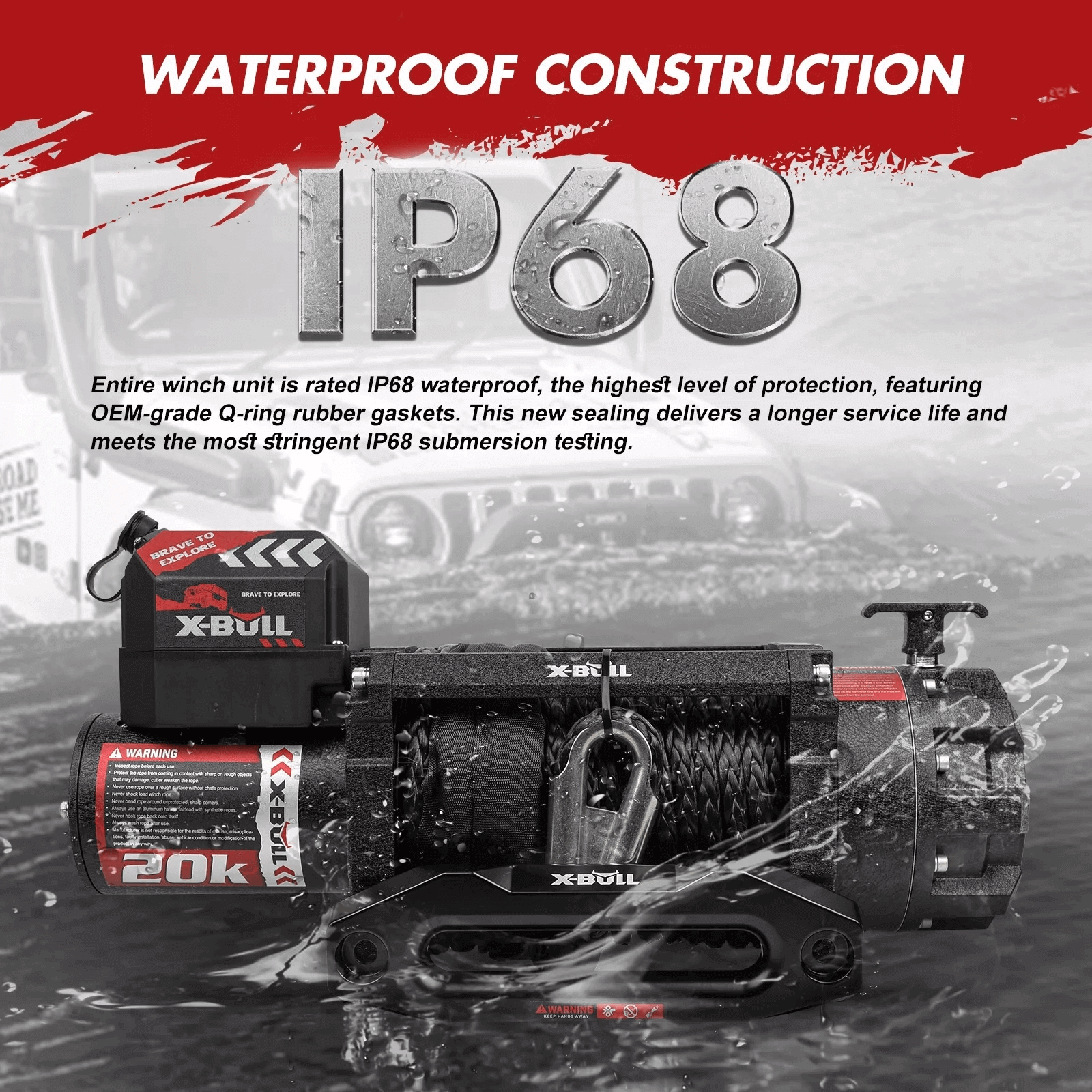X-BULL 12V Electric Winch 20000LBS Synthetic Rope Truck Trailer Winch 4X4 4WD
