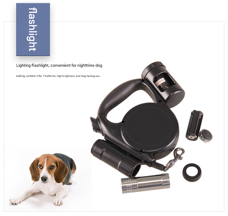 - 3-in-1 Multifunctional Design: This leash integrates a retractable lead, a bright LED flashlight, and a convenient pet waste bag dispenser. Say goodbye to juggling multiple items and enjoy streamlined walks.
