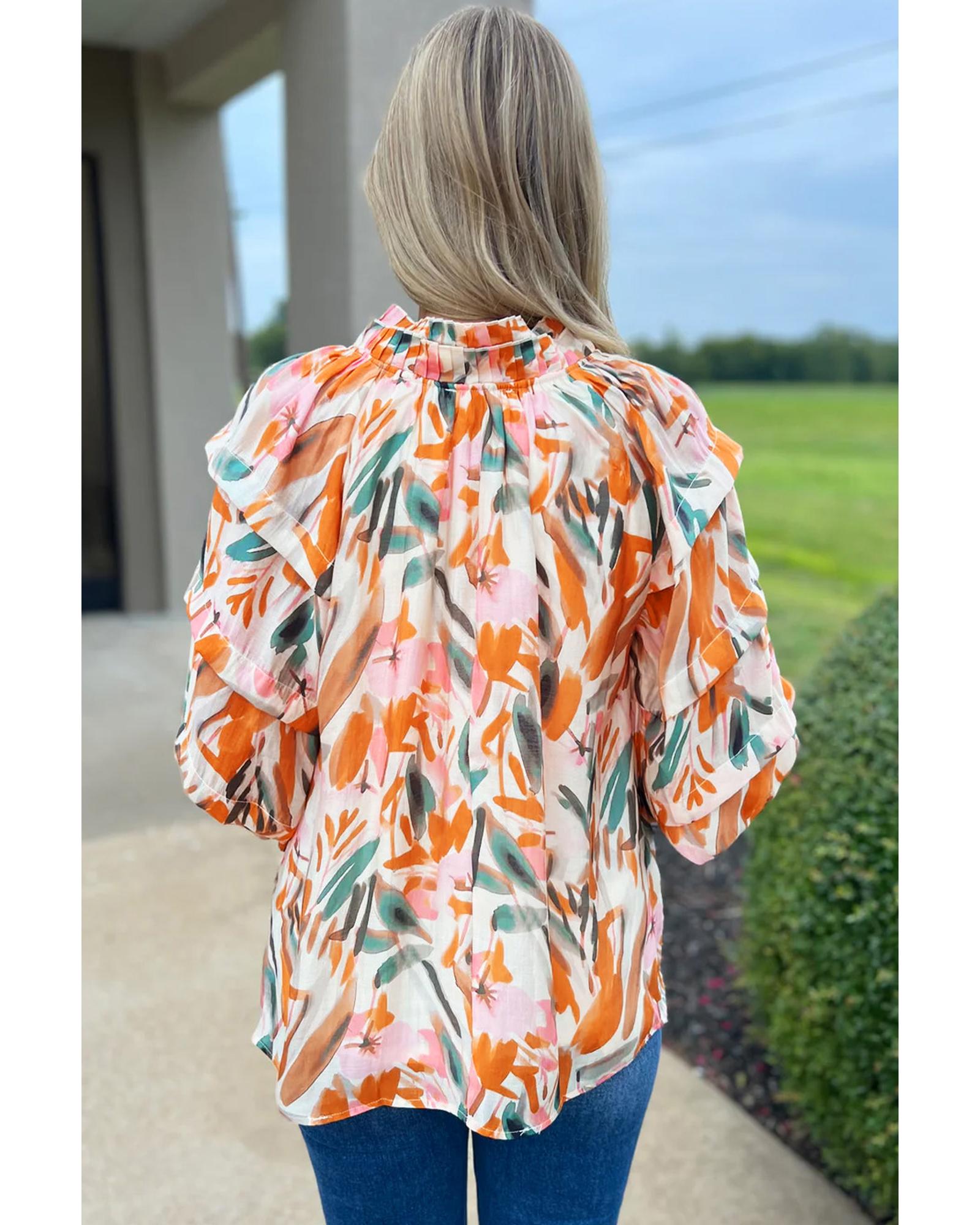 Black Floral Ruffled Flutter Sleeve Tied V Neck Blouse - S Original price was: $55.99.Current price is: $29.99.