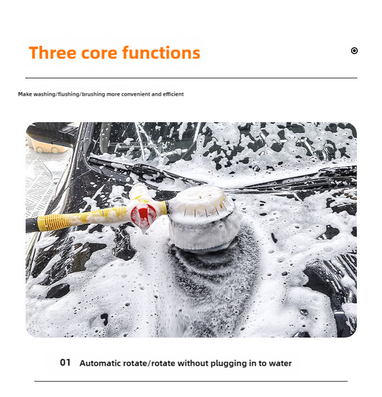 - Rotating Brush Head: Easily removes dirt and grime from your car with a 360-degree spinning action.