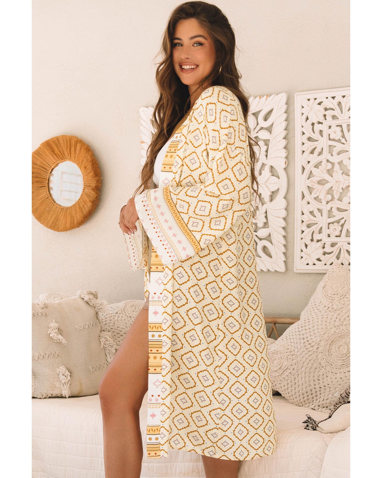 Yellow Bohemian Geometric Printed Loose Sleeve Long Kimono – XL